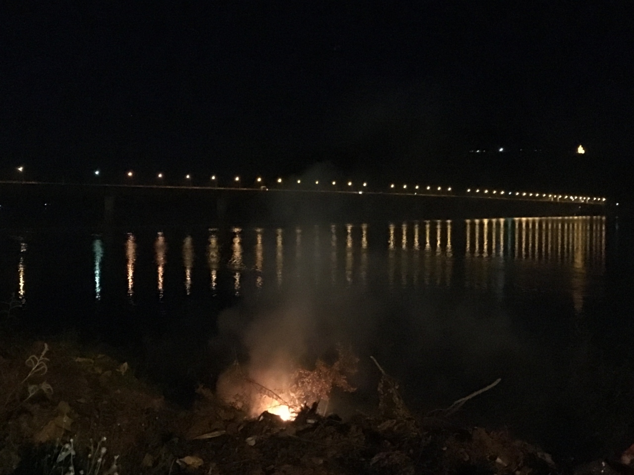 夜はメコン川流域から橋の方を見ると、街灯に照らされた橋がなんとも幽玄で絵になる光景です。