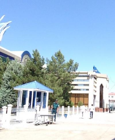 レギスタン広場からタシケント通りを北上したところにある、青いドームが目印のとても大きなモスクです。
