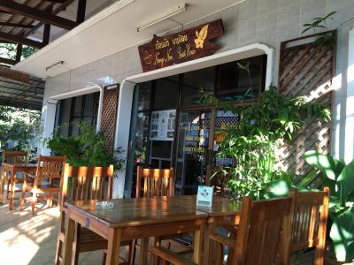 食事はありませんが、近くに食堂があるのでまず困ることはないと思います。ワットプ―やシーパンドーンなどへの観光地への拠点としては良い選択肢だと思います。