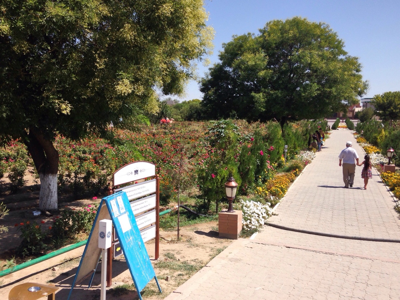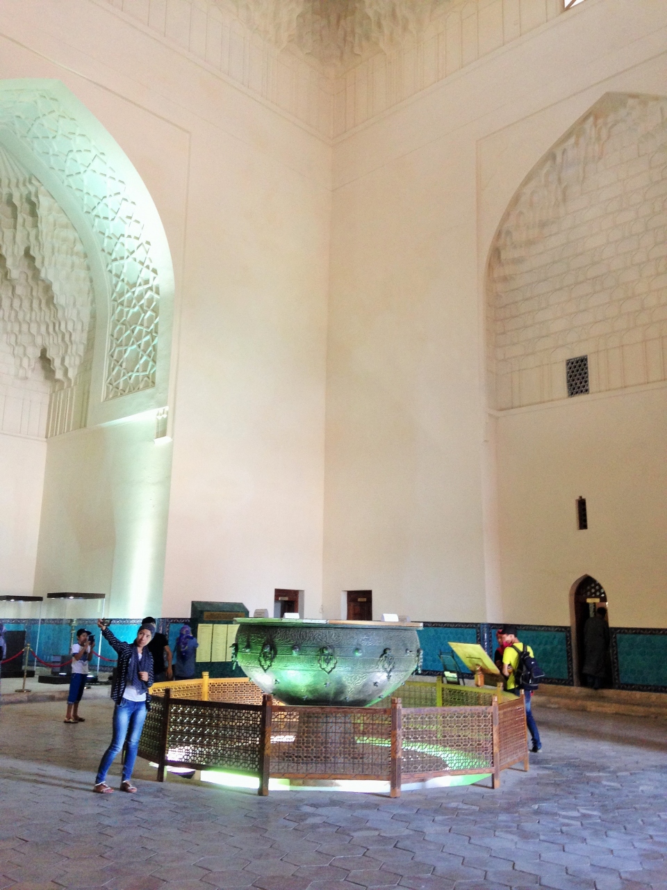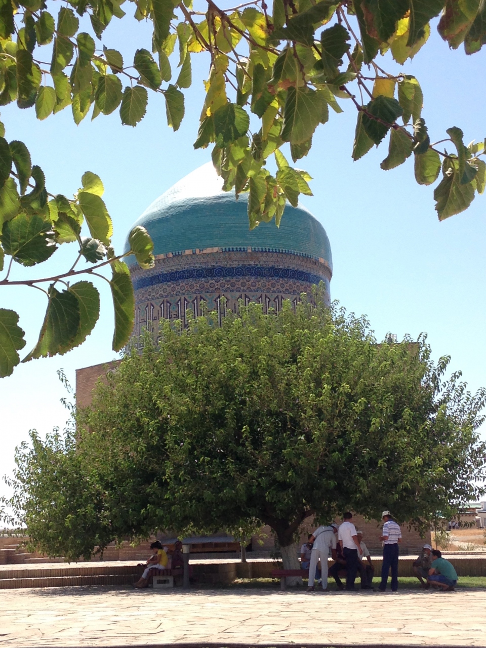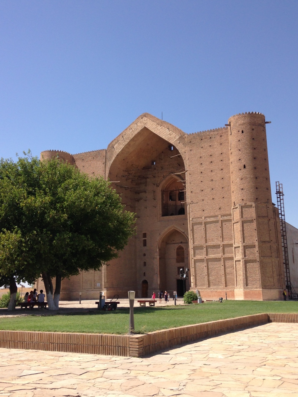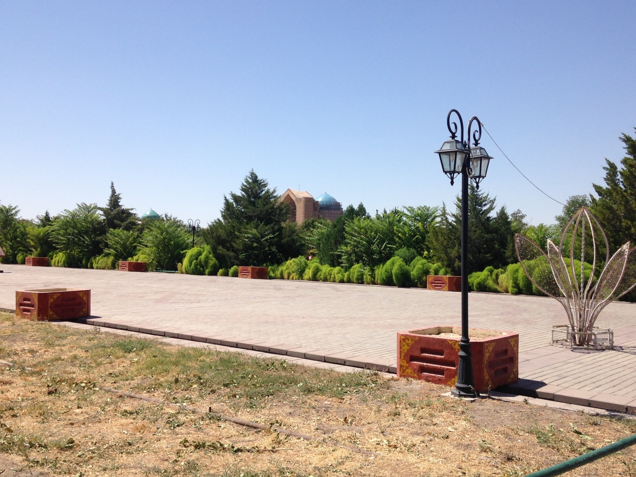 13世紀末にティムールが彼の偉業を讃えて建築を命じたものだと言われ、当時のティムール様式建築が遺されています。敷地は広く、同じテュルク民族のトルコの援助で各設備が整えられていました。またこの廟は中央アジアの人々にとっての聖地で、メッカにも勝るとも劣らない巡礼スポットだそうです。