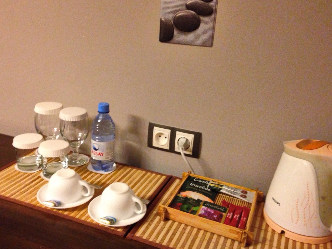 お部屋もブティックホテルと銘打っているだけあって、こじんまりしているけれど共用部から室内からオシャレな内装。そしてウェルカムドリンクからfree-wifiに湯茶のサービスあり。アメニティは歯ブラシ、石鹸、シャンプーなどがありました。