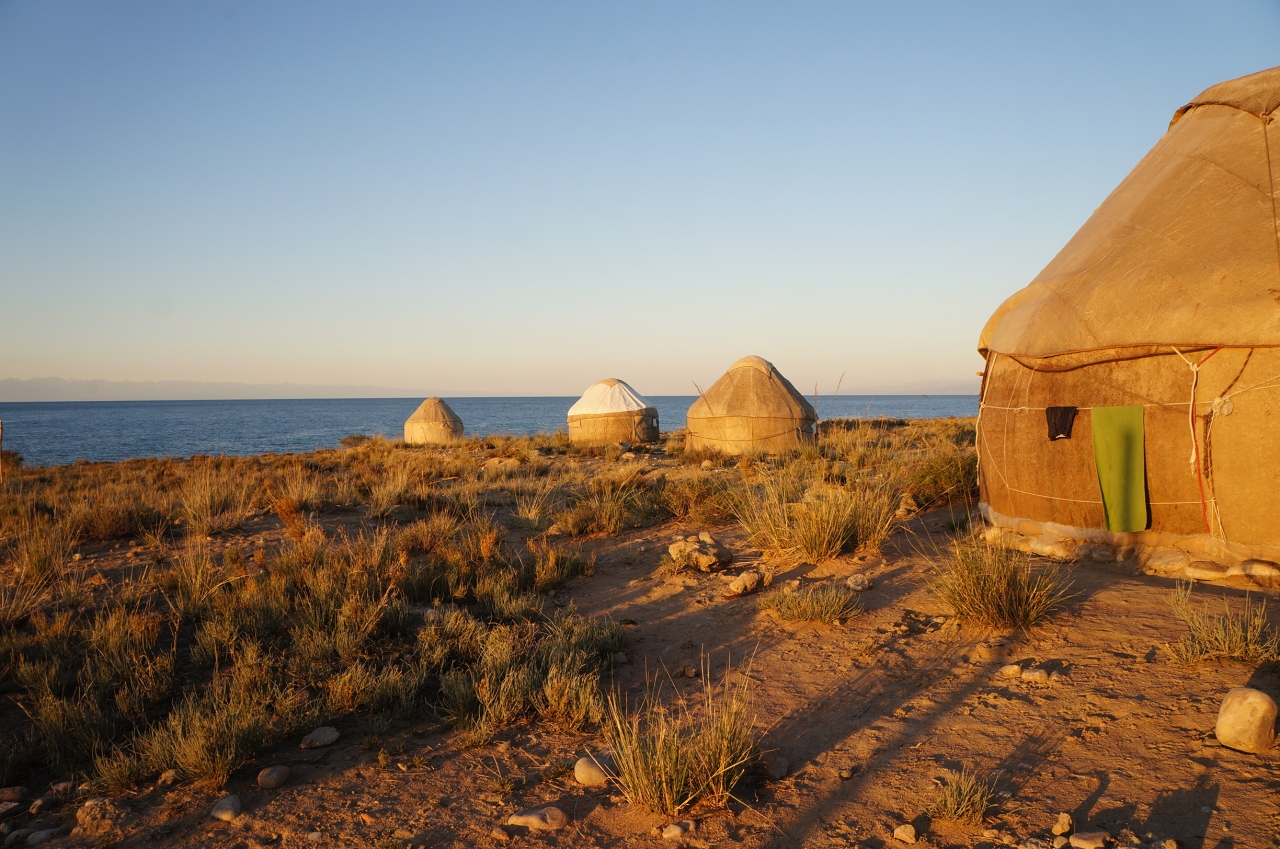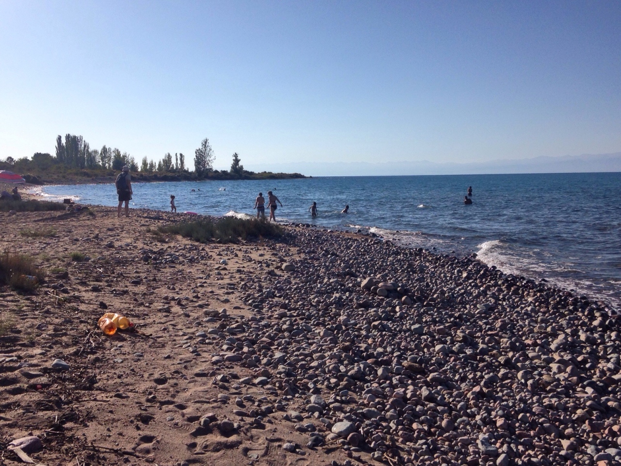 またこのキャンプ場はイシククル湖の湖畔にあるため、湖で遊びたい&泳ぎたい放題です。湖は世界第2位の透明度を誇っており、かなり奥の方まで底を見ることができて素晴らしい眺めです。また夜になると周囲には灯がないため、星空がかなり綺麗です。流れ星がビュンビュン飛んでいました。キャンプファイヤーを囲んで、他の旅行者と語り合うのもまた楽しいです。