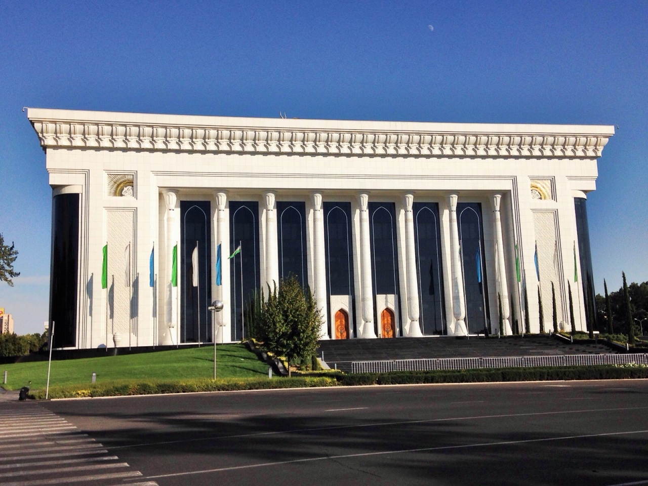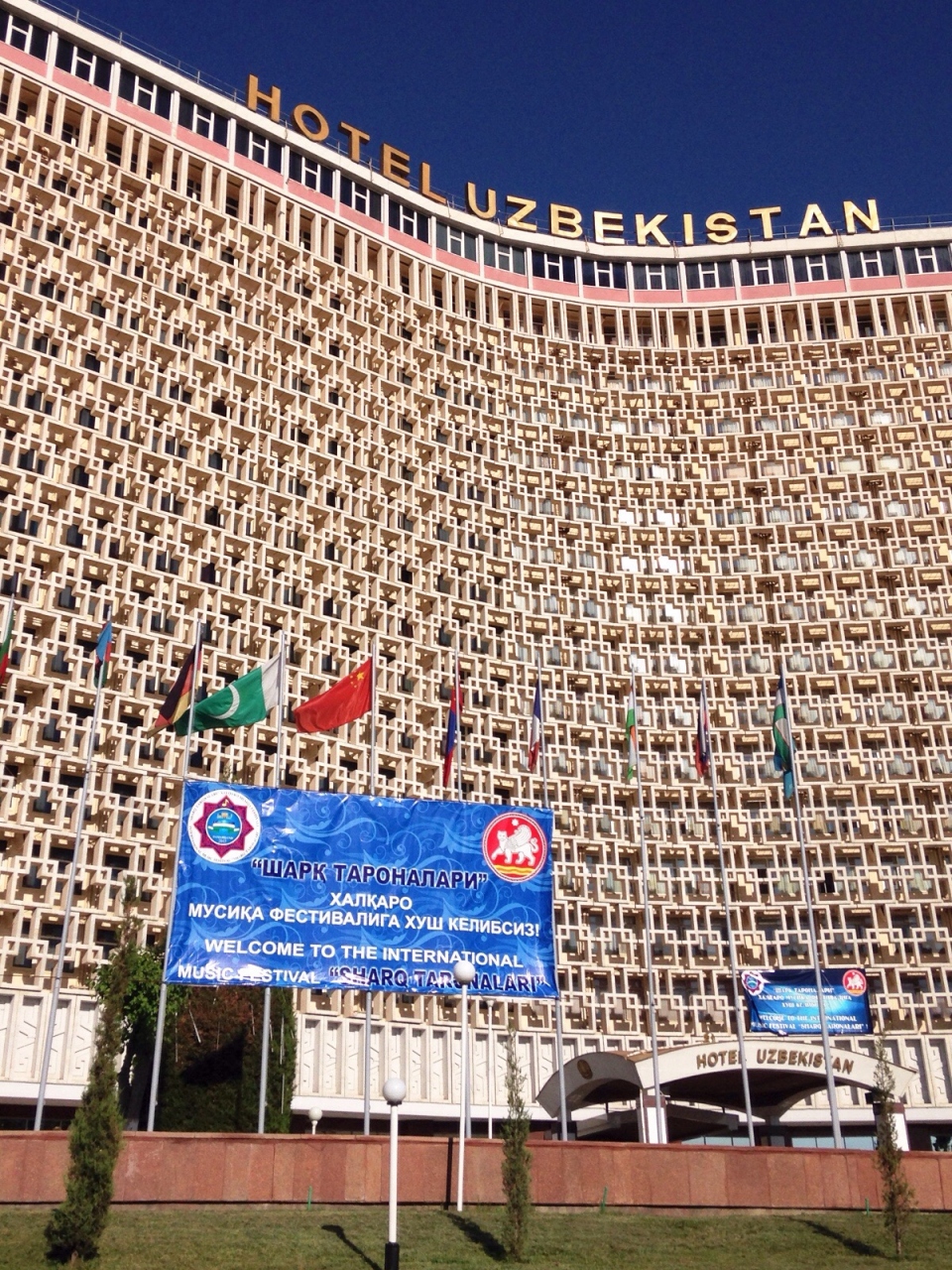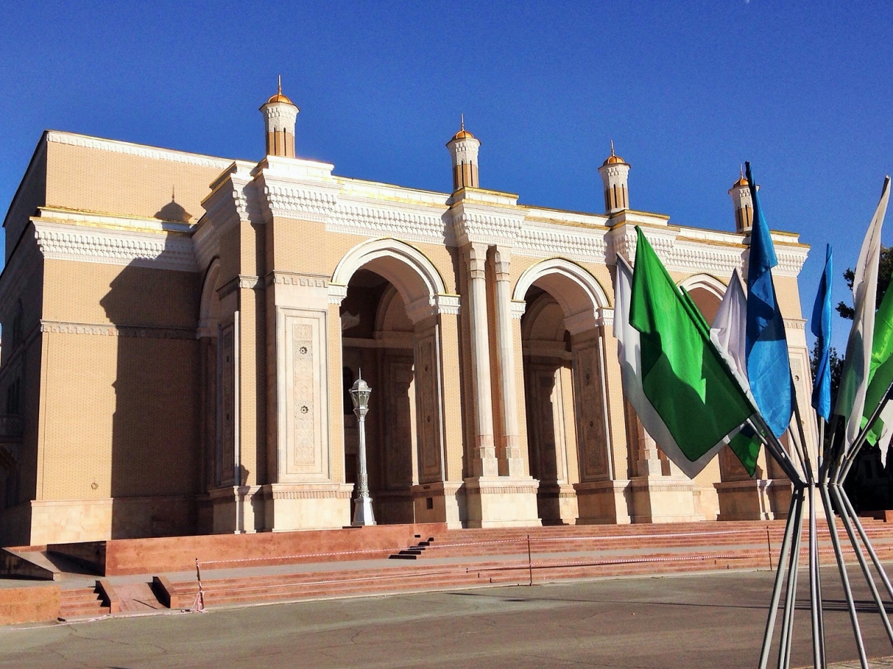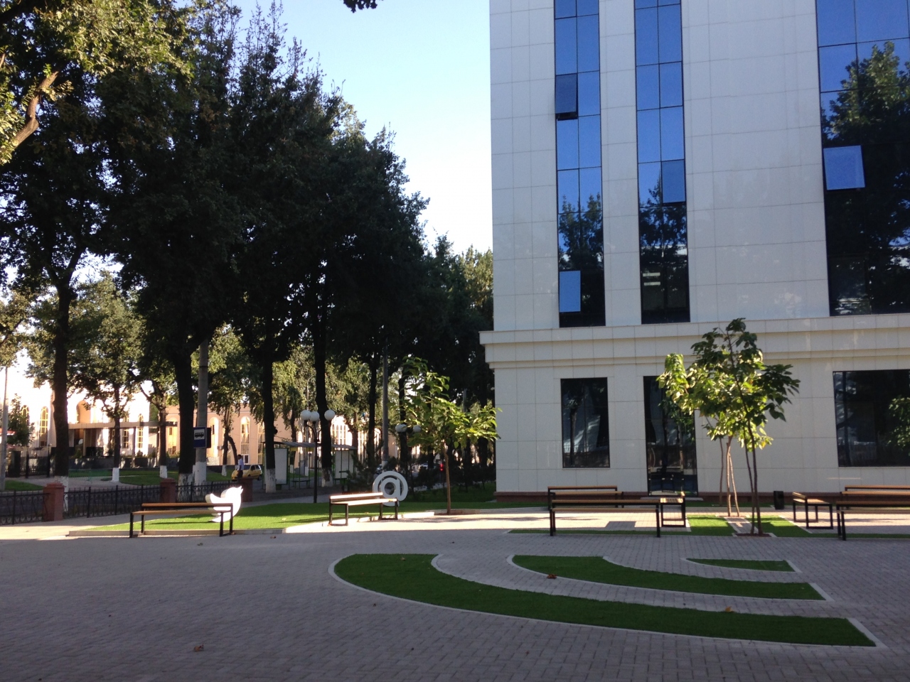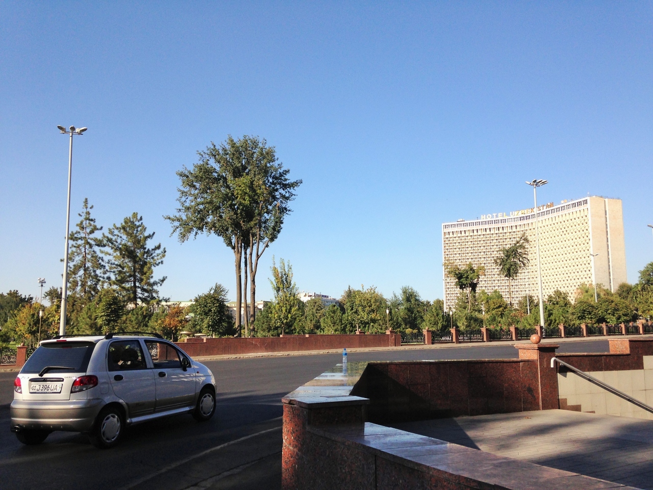 すぐそばにメトロ駅あり。広場に面して、ホテルウズベキスタンや国際会議場などがあります。ナボイ劇場までも歩いて15分ほどです。