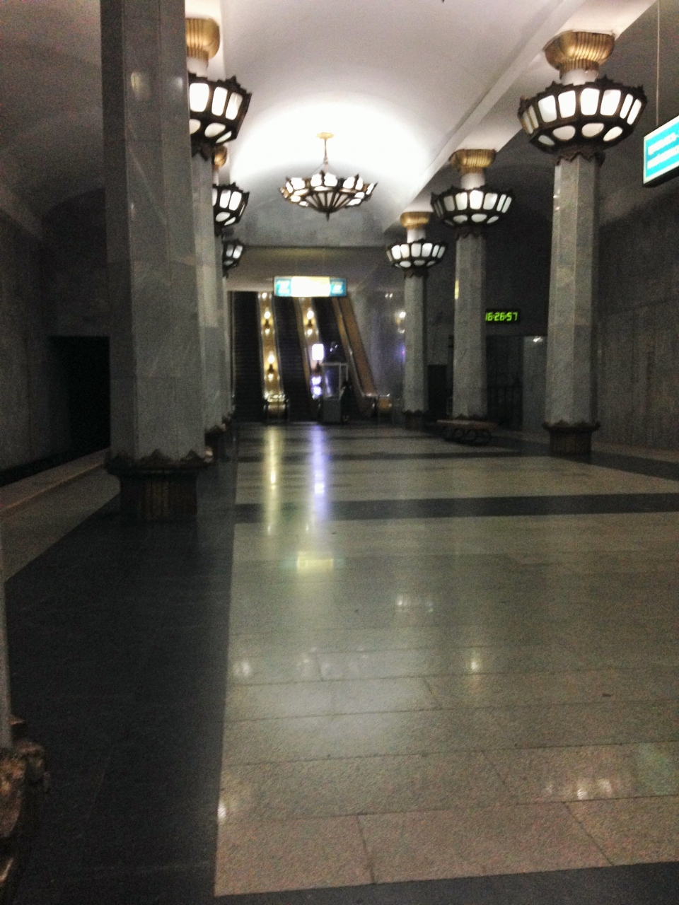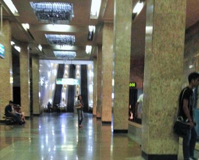 また入口でトークン式のチケットを買って中に入りますが、ホームでは写真撮影禁止です。モスクワのメトロのようにゴージャスな内装なのでつい撮影したくなりますが、その瞬間に警察に呼び止められますので注意。