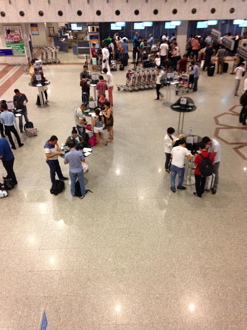 また税関と荷物チェックと出国検査と再度荷物検査があるため、出国までに普通の国の空港よりも時間を要するため、2時間以上前に着いていた方が良いです。人の列も混み合っています。