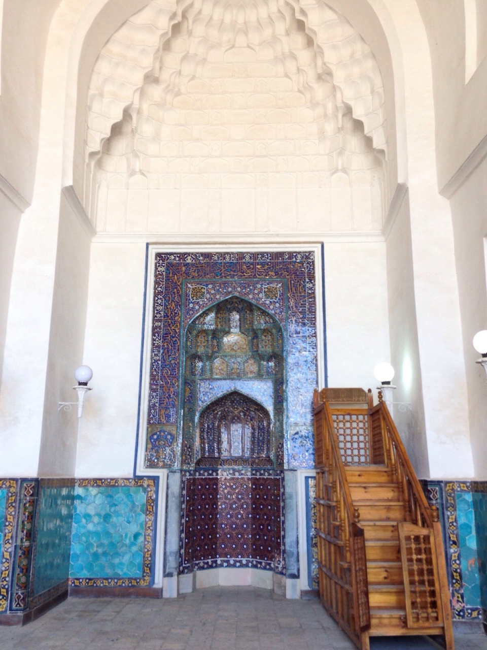 古くはこの地にイスラム教が伝わった8世紀には今の位置にモスクが建てられていたそうですが、チンギス・ハーンの猛攻とによりブハラの街は壊滅状態になり、モスクも壊されました。現在残っているのは16世紀のシャイバニー朝時代に建てられたものだそうです。