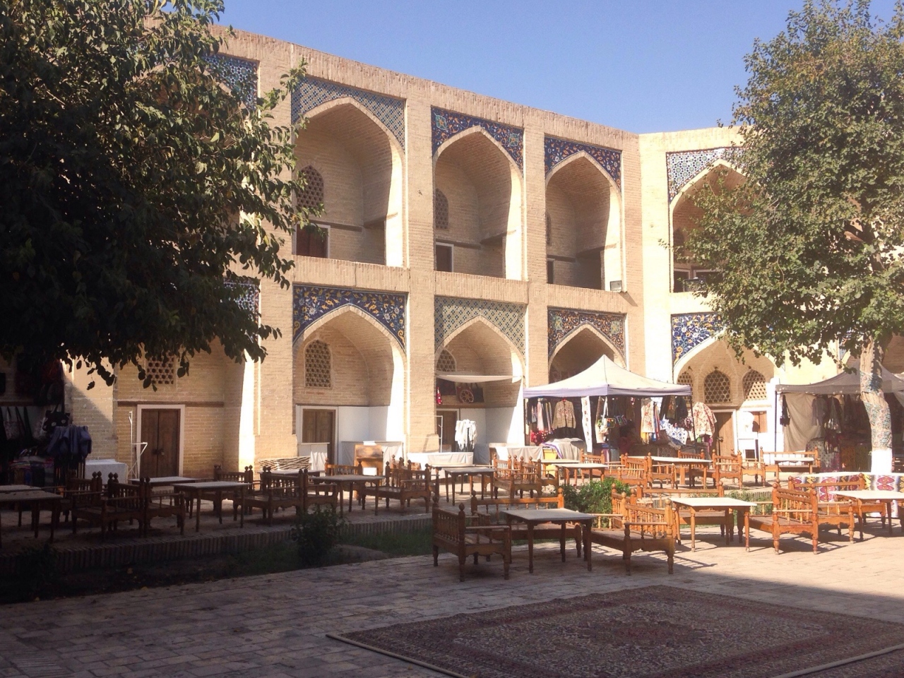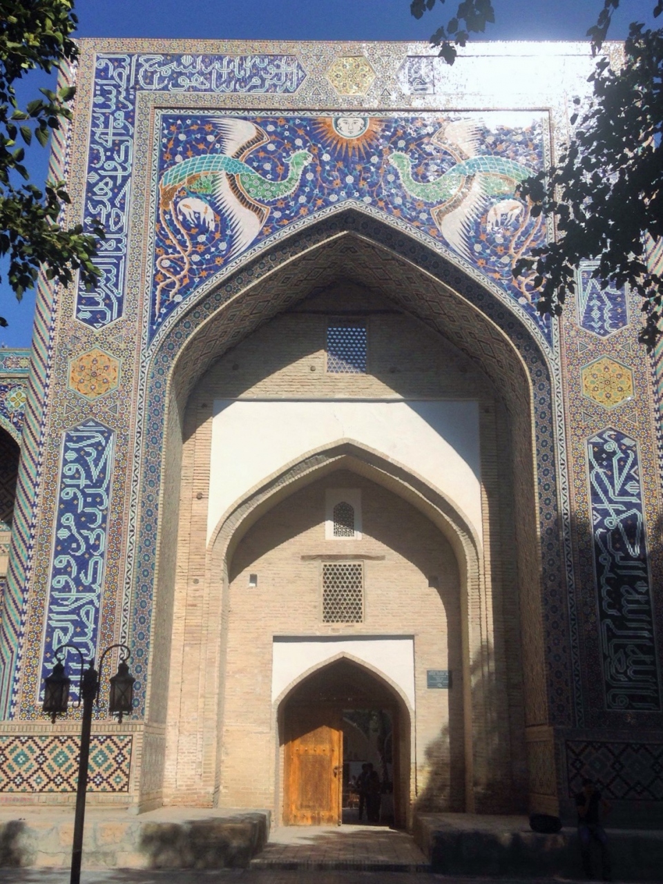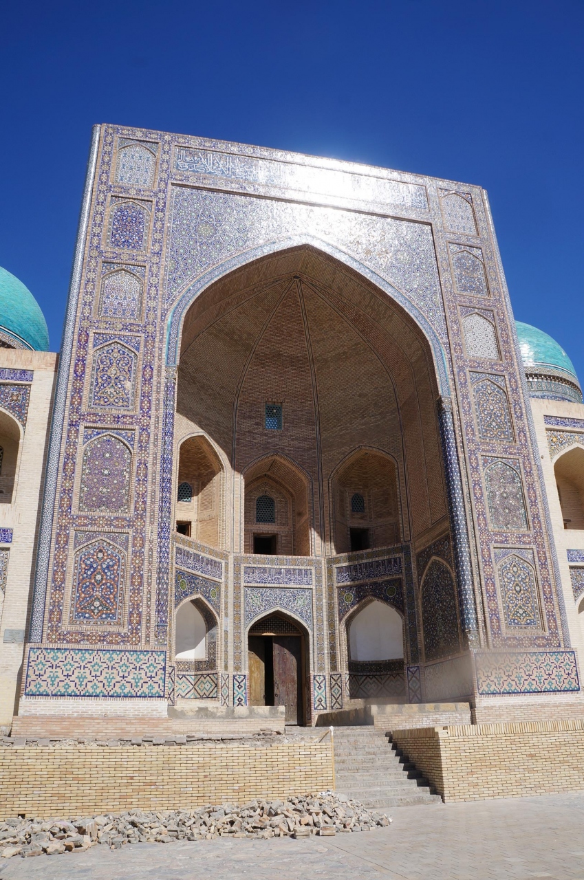 他のブハラのメドレゼの多くは観光スポットとなっているところがほとんどですが、ここは数少ない現役のメドレゼで、観光客は立入禁止となっています。中を見てみたいと思うのは観光客の勝手な願いですが、その美しい外観から内部も期待できそうなので、いつか一般公開されてほしいです。