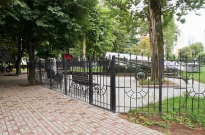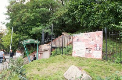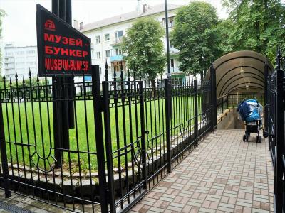 行き方がちょっと分かりにくいのですが、市内を南北に走るレーニンスキー通り沿いから写真のような門をくぐって園内に入って真っ直ぐ進むと"BANKER MUSEUM"の表示がある階段があります。そこを降りると博物館です。最終入場は16:30まで。
