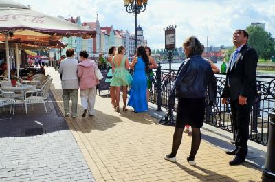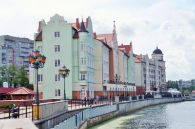 ケーニヒスベルク風の建物が並ぶカリーニングラードの再開発地帯