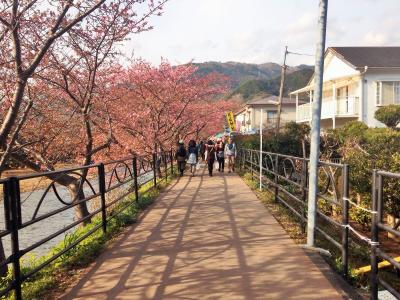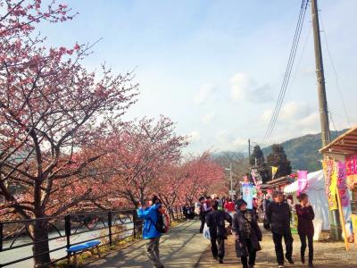 川に沿って並ぶ河津桜たちとともに、町の人達あ個人商店が出している露店群がなかなか楽しかったです。