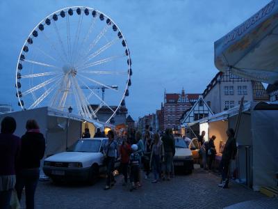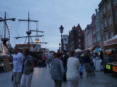 グダンスクの名物祭り・聖ドミニコ市の際には大変な人通りで、ストリートパフォーマーやミュージシャンたちが技を披露しあったり、特設の鉄の門などが据えつけられたり、大変賑やかな空間になっていました。- 旅行時期