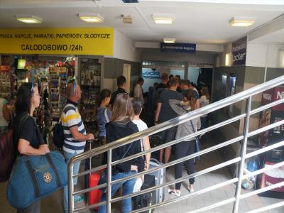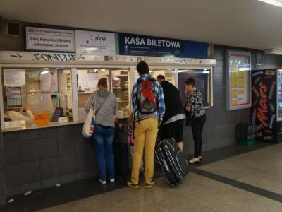 この両者は切符売り場も異なるのですが、夏の聖ドミニコ市の最終日というハイシーズンだったためか、地上部分PKPの切符窓口売り場が凄い行列!写真を見ると分かりますが、多分数時間待ちだったのでは…。回避するにはすぐそばの自動券売機を利用しましょう。英語可。