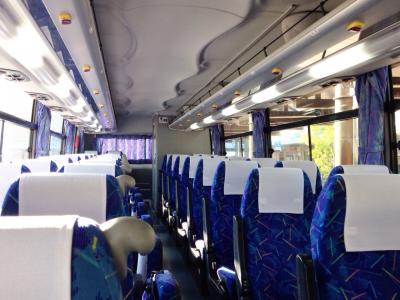 運行会社は奈良交通、所要時間70分、ゆったりした4列シートで1950円。