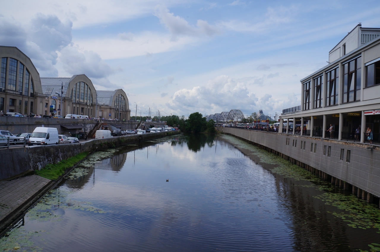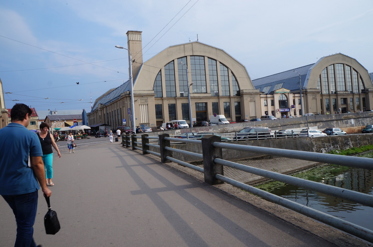 リガのバスターミナルを背に右側の橋を渡るとすぐにある巨大市場です。
