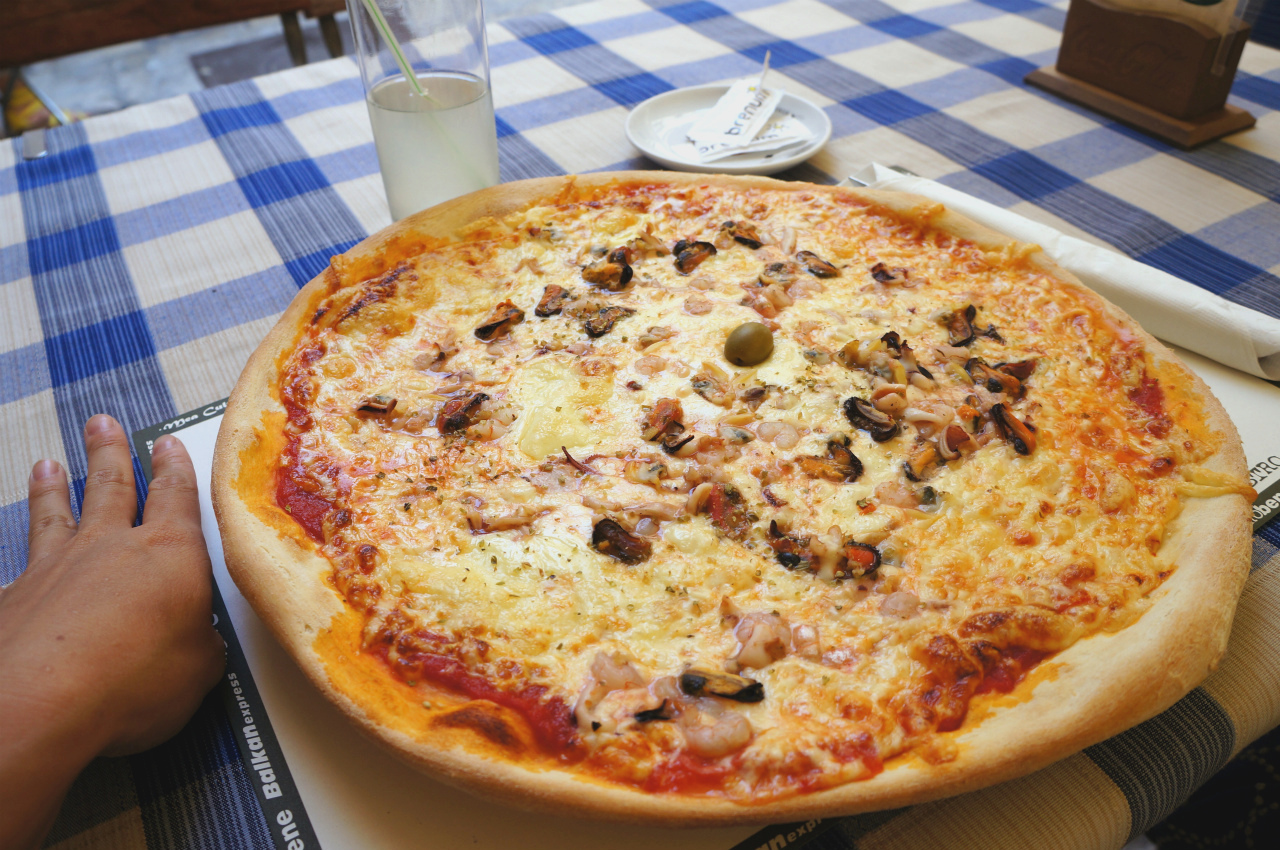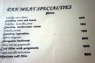 イタリア以外で食べるピザは大抵美味しくなくって、ここでも典型的な非イタリアなせんべいピザが出てきました。他のバルカン諸国でもそんな感じで、イタリア人に言わせると『あれはピザじゃない。ピザという名の別の食べ物だ』とのことです。日本のピザのレベルがいかに高いことか!