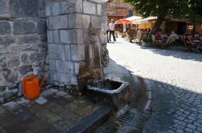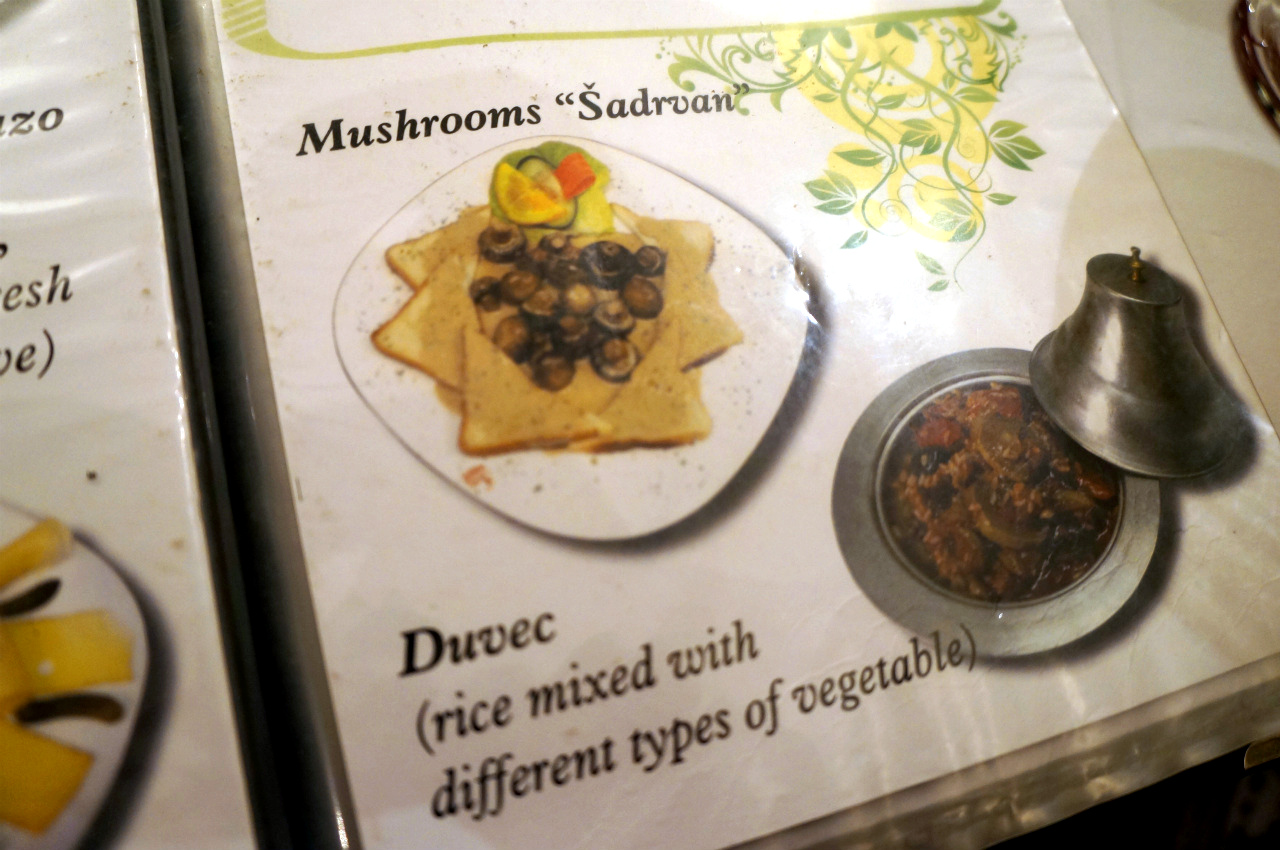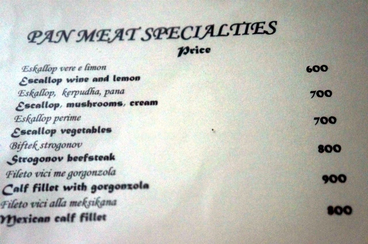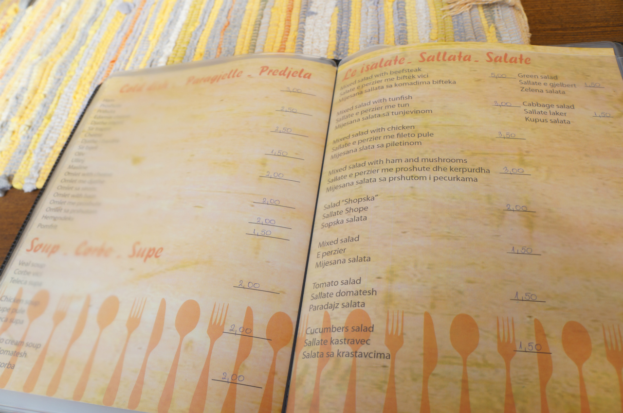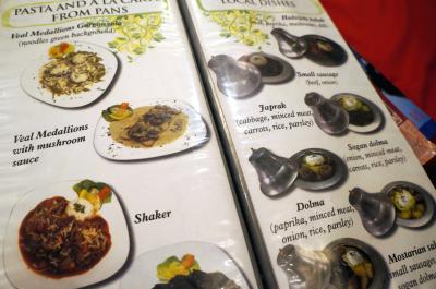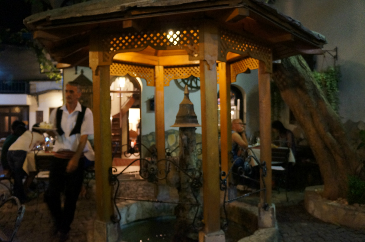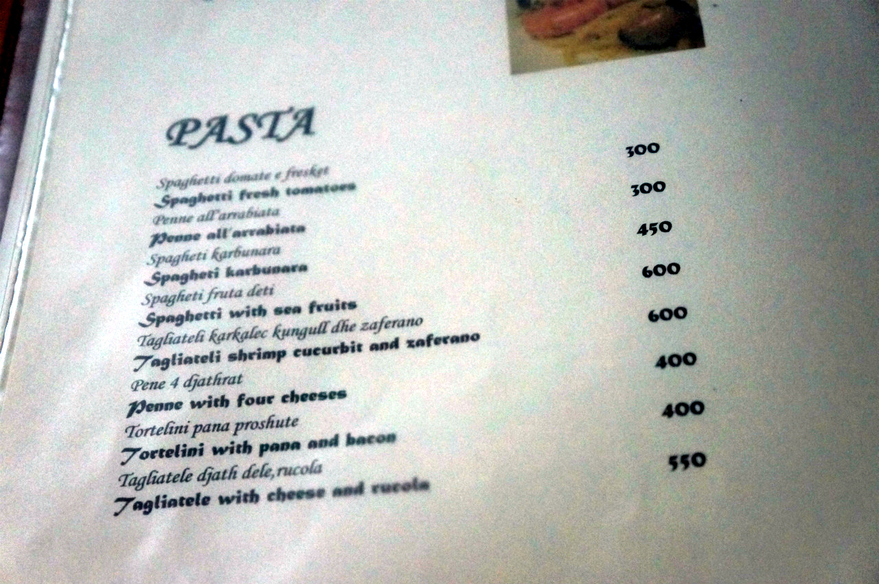 このSarajet=サラジェというお店は、オスマン朝時代の造りの邸宅を改造した内装/中庭で、伝統的なアルバニア料理も頂くことができます。そういうのが苦手な人向けにパスタとかもあるのでご安心を。