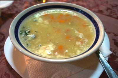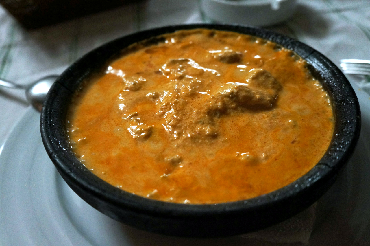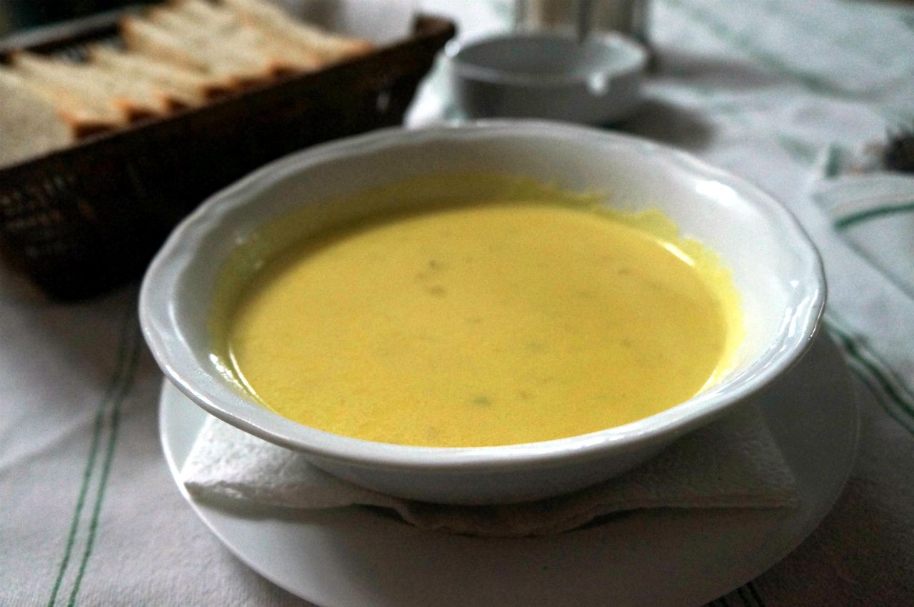 Fergese Cobani チョバニというアルバニアの伝統料理を頼んだら、鉄鍋にチーズと羊肉がグツグツ煮込まれてやってきました。なかなか濃厚な味付けです。それと野菜スープ