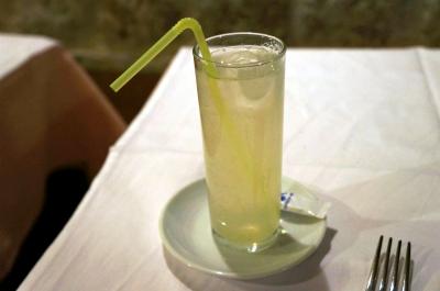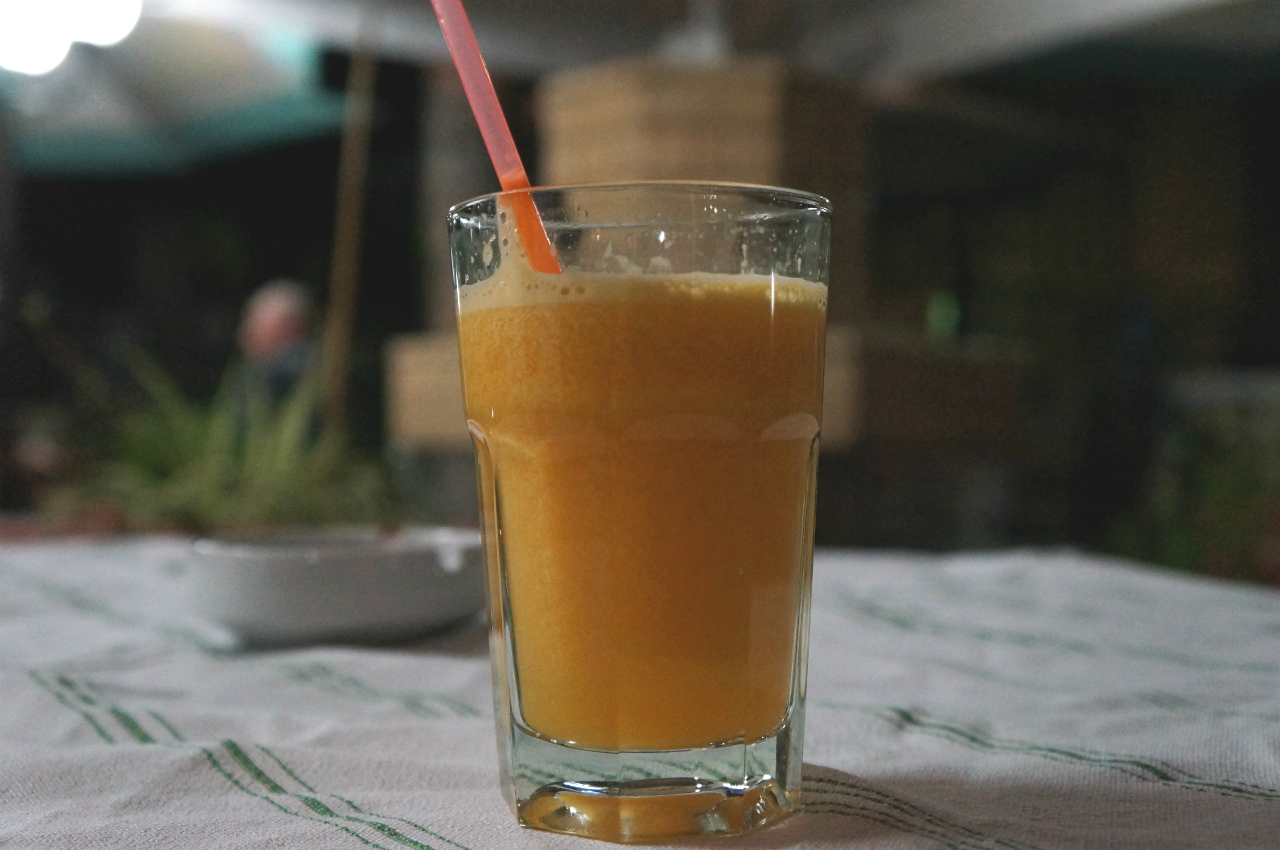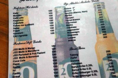 J2Oというアルバニアローカルの飲み物ブランドのマンゴーミックスジュースを頂きました。味つけもまあおいしい。約1000円弱。