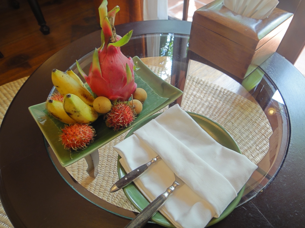 ウェルカムフルーツによるおもてなしや、現実を忘れてリラックスできるお庭は素晴らしいですが、いかんせんシェムリアップ中心部から外れているため、不便を感じます。