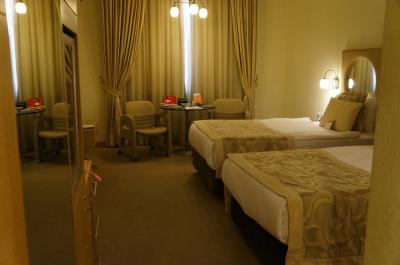 朝食もついています。スゴイ。早朝6時のフライトだったため、朝の3時から食堂でバイキング(笑)。内容はパンに白チーズにその他いろいろ、シティホテルとしては良くて満足しました。
