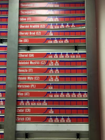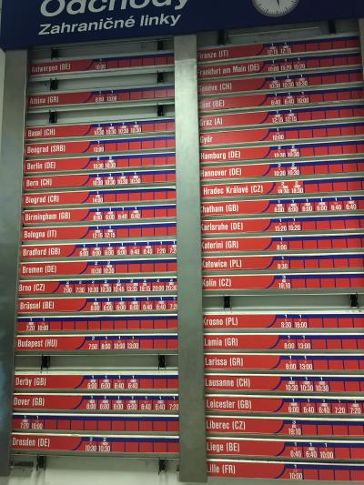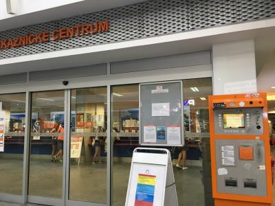 またこのバスターミナルは駅ビルが併設で、カフェ・薬局・服屋などの商業施設が入っており非常に便利です。ちょっとしたお土産を買うのもいいです。特にカフェはおしゃれでケーキ類だけでなく瓶のビール・ワイン・ウニクム(鉄ワイン)・キルシュなどお酒の種類や珍しいお茶缶がありオススメです。- 旅行時期