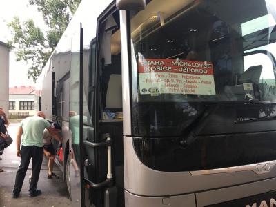 2017年夏にコシツェ→ウクライナ・ウジゴロド間で利用しましたが、前もってコシツェのバスターミナルでチケットを買う必要があります。要パスポート、片道3時間(-時差1時間)で6.7ユーロ。1日6便出ていました。立派なバスで乗り心地良かったです。こちらの会社が運行でした。