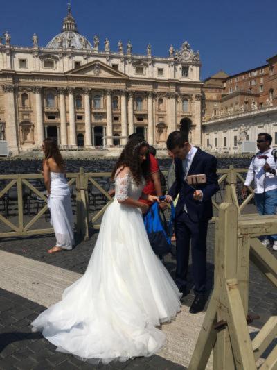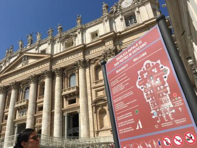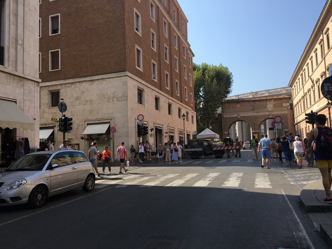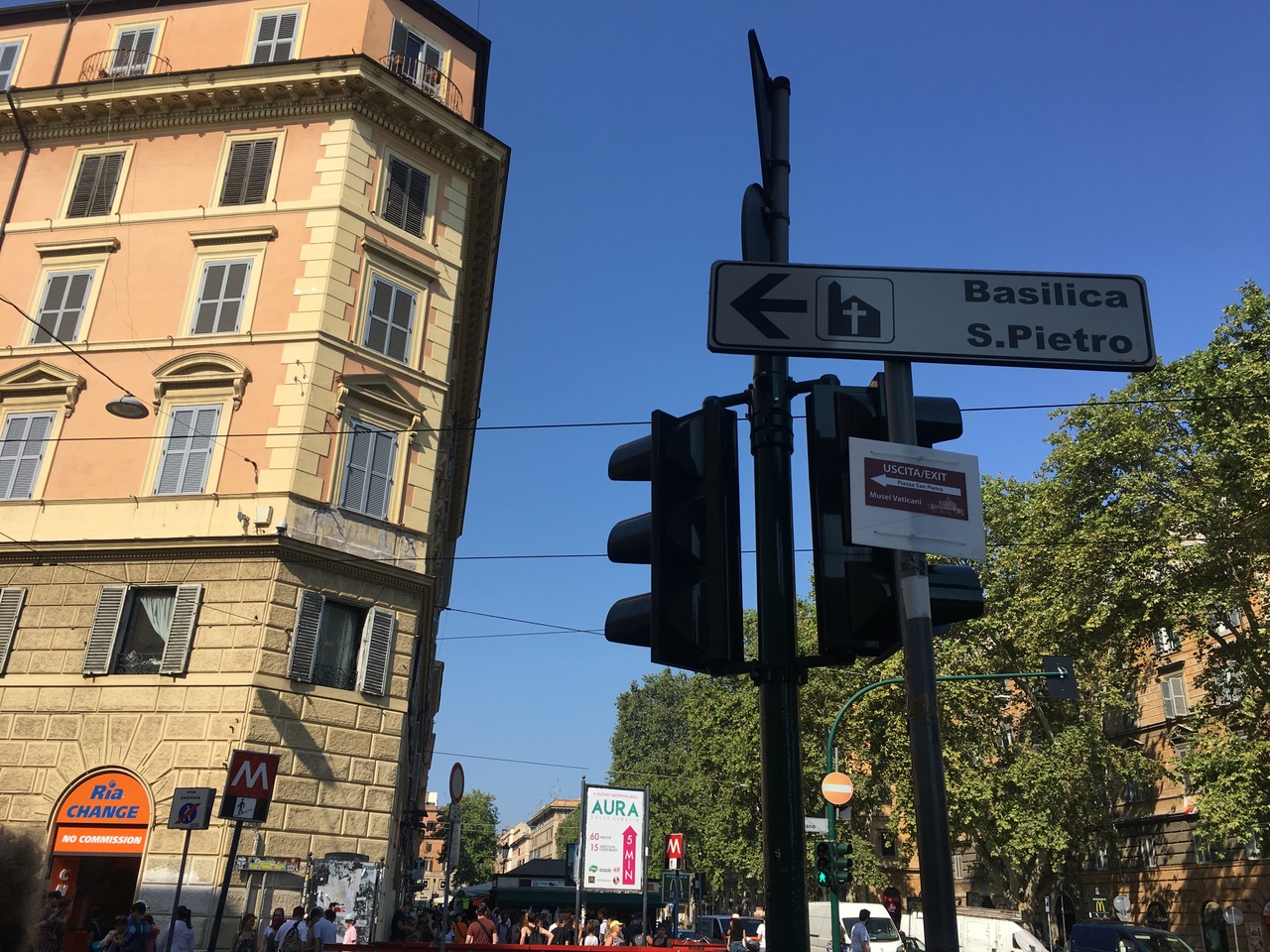 地下鉄駅から出た瞬間は、方向感覚が無くて悩むかもしれませんが、大半の人がバチカン方面に歩いていくので、人の流れについていくと良いと思います。