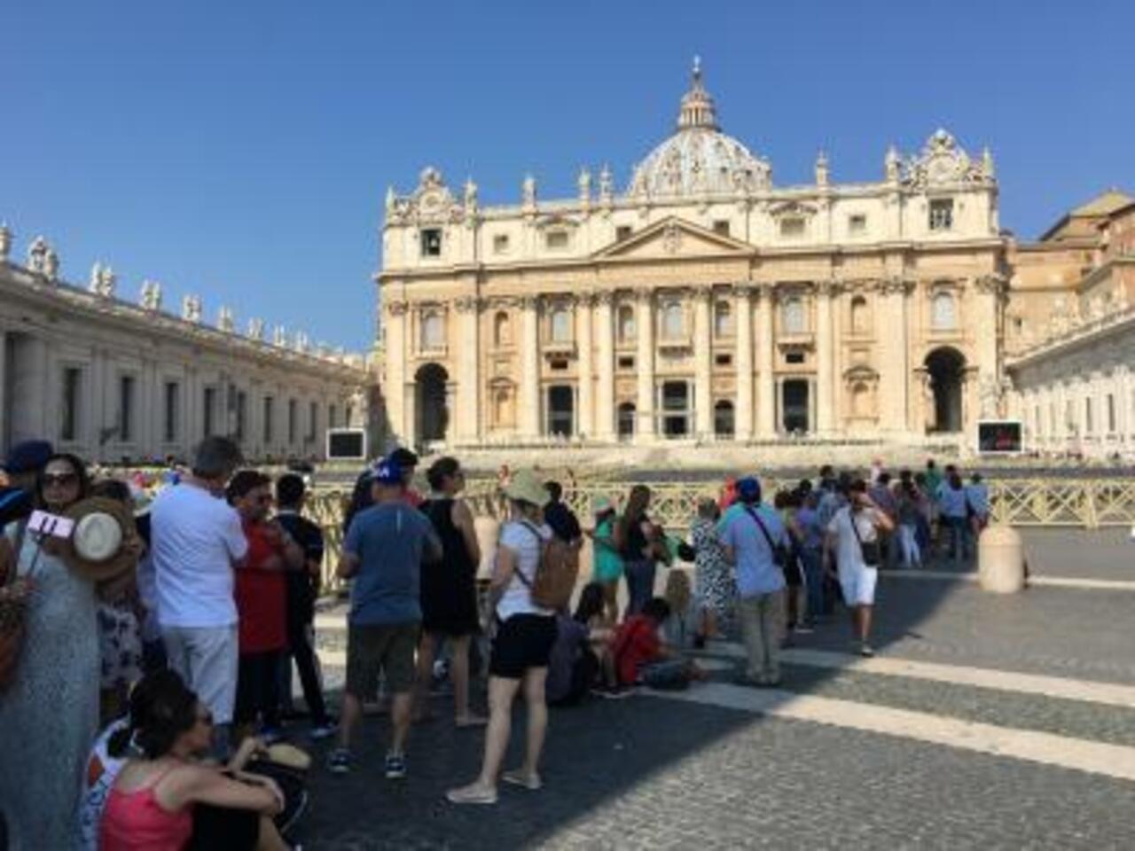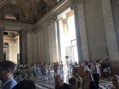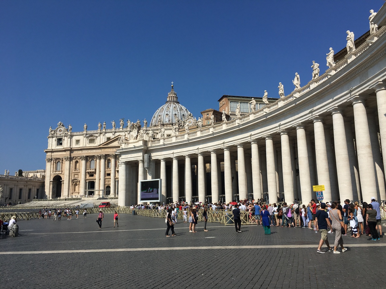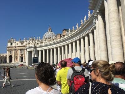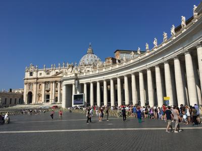 バチカンに来たらまずこれ!というサン・ピエトロ寺院。いつも多くの観光客が訪れるため長蛇の列ができています。特に夏は日差しが強く、影もないので並ぶのが辛いです。