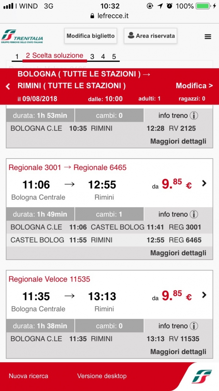 ローマ→ボローニャ中央駅→リミニの乗り換えで利用しました。ここで思わぬ落とし穴が!