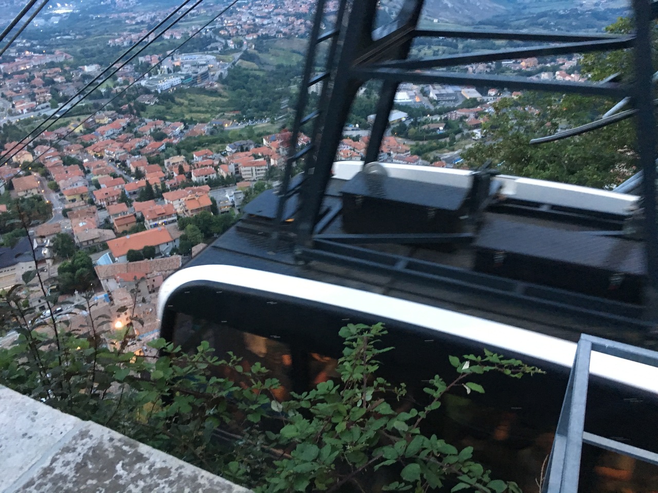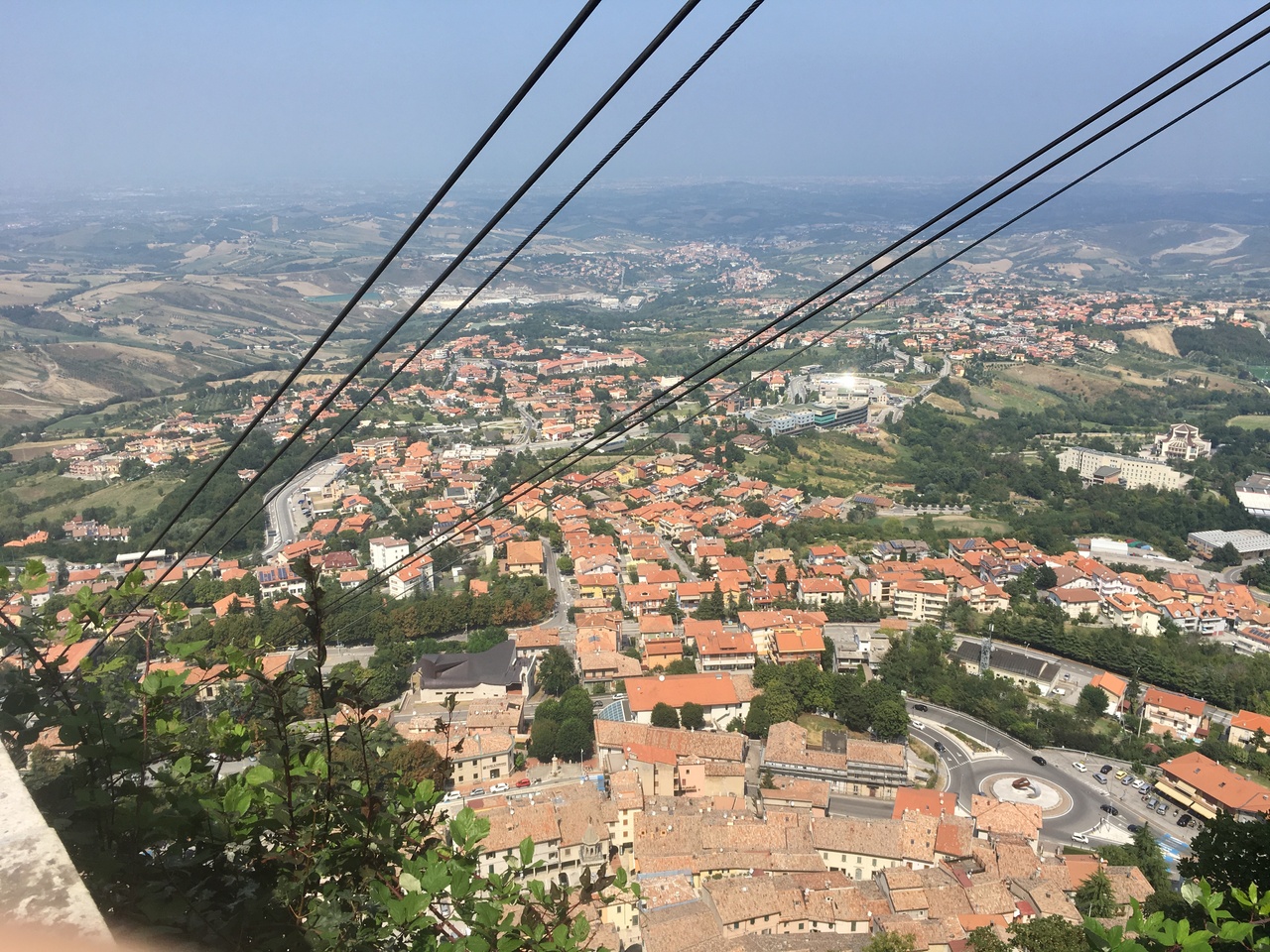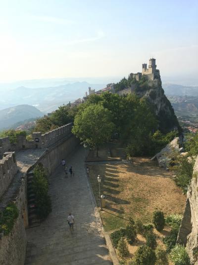 サンマリノのロープウェイは1959年に作られたそうで、結構長い歴史があります。夏場は利用する人も多く、どちらかといえば下のボルゴ・マッジョーレから上がって来る人の方が多かったです。自力で下山するには30分ほどかかるそうなので、往復で利用した方が良さそうです。