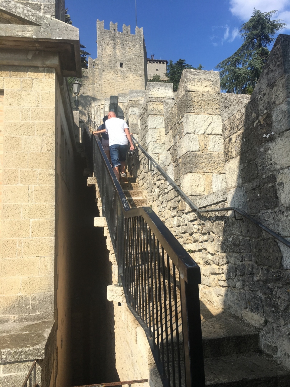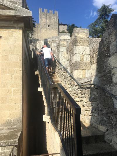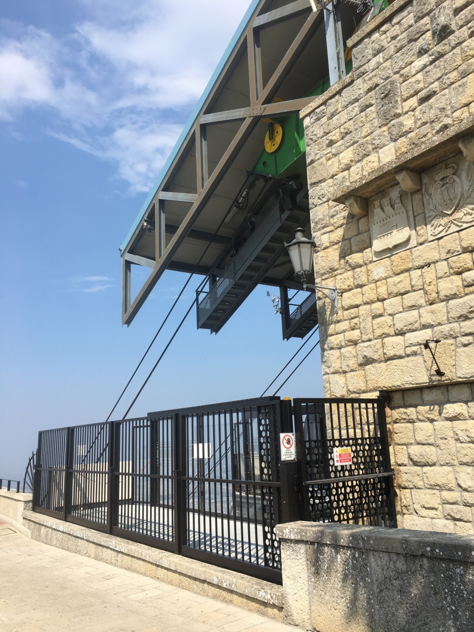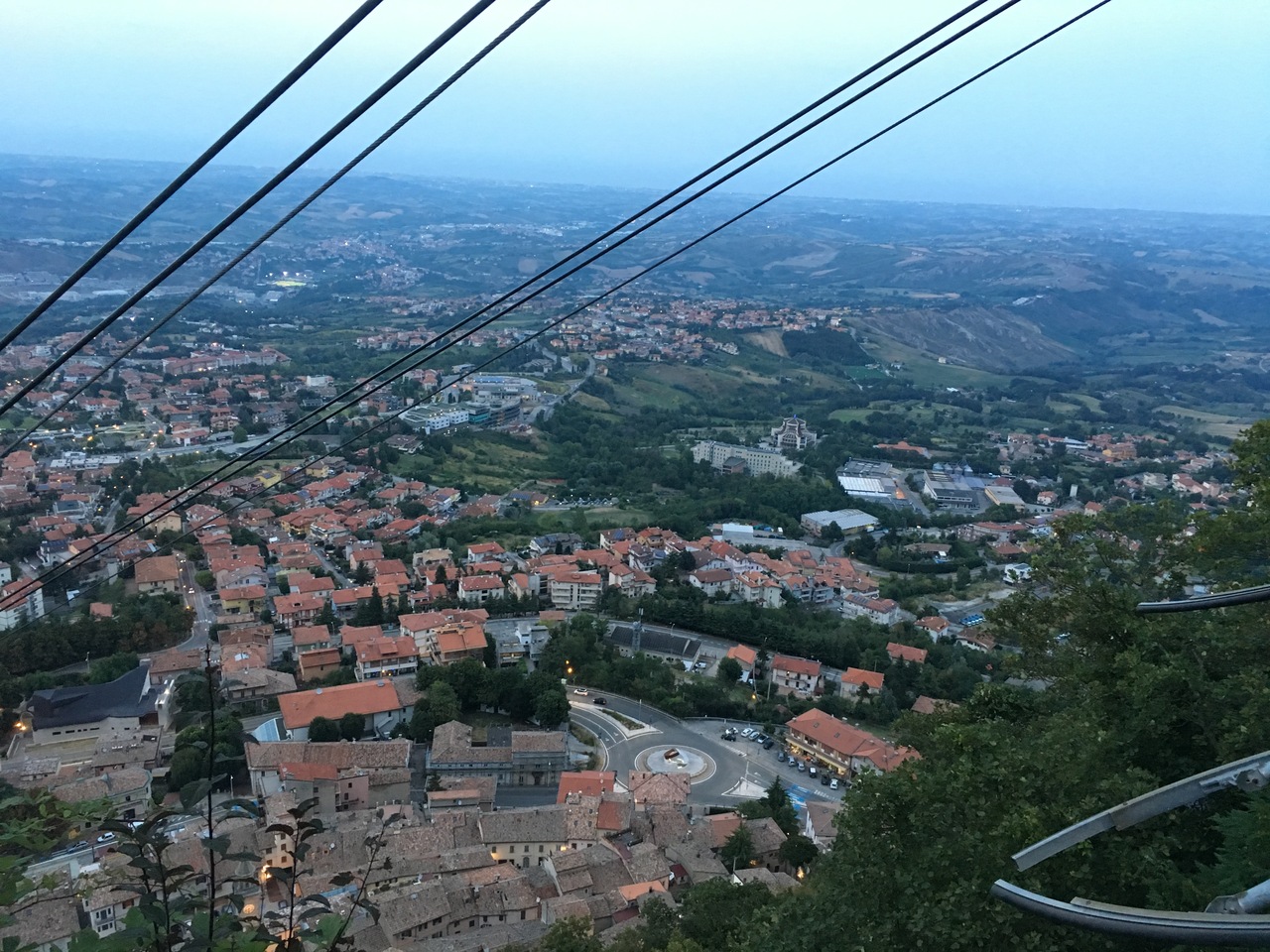 サンマリノのロープウェイは1959年に作られたそうで、結構長い歴史があります。夏場は利用する人も多く、どちらかといえば下のボルゴ・マッジョーレから上がって来る人の方が多かったです。自力で下山するには30分ほどかかるそうなので、往復で利用した方が良さそうです。