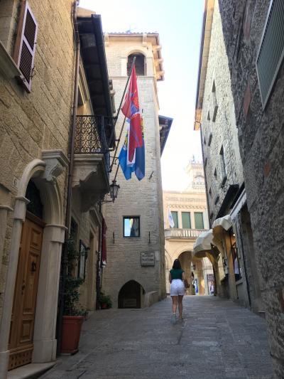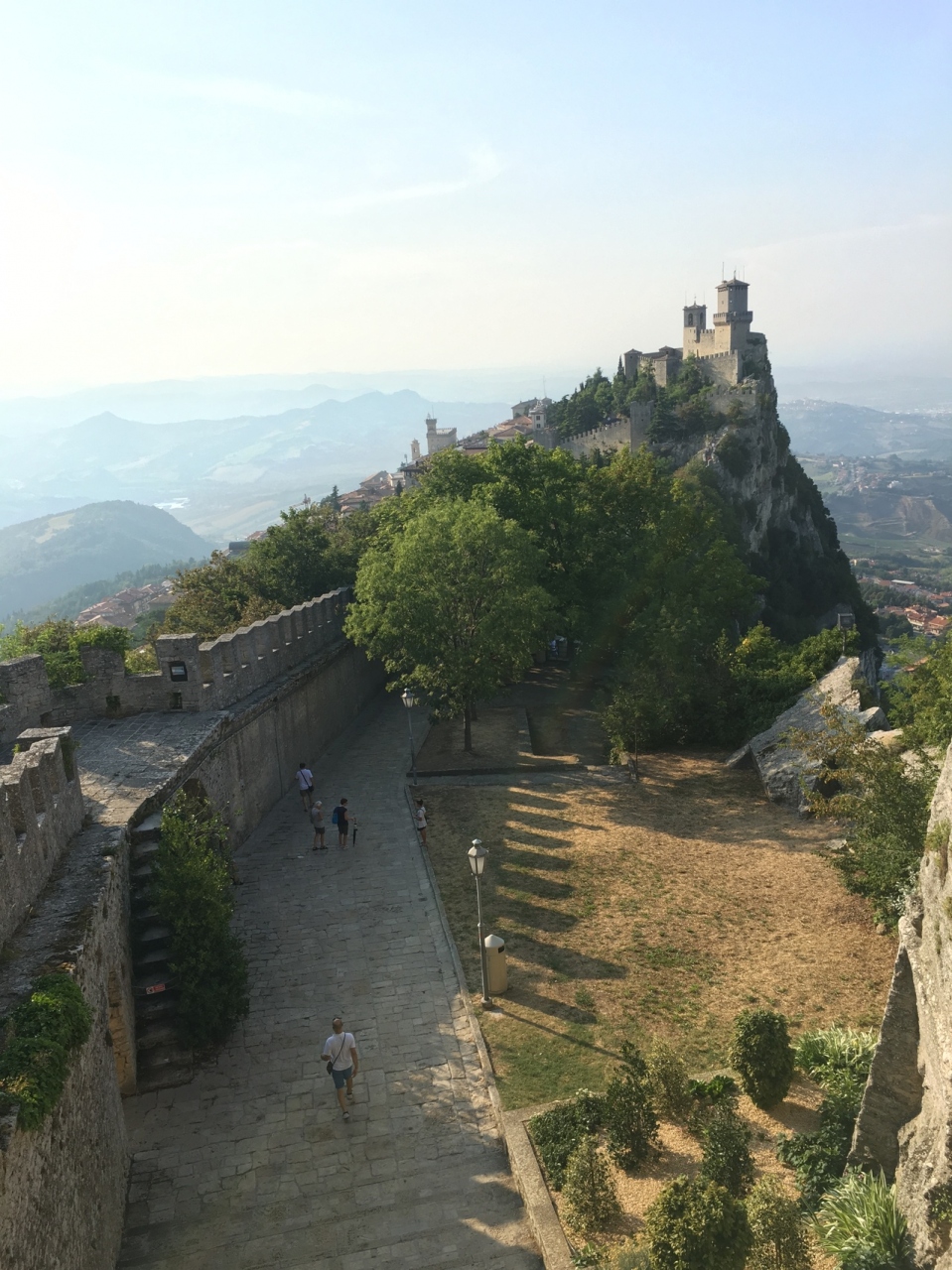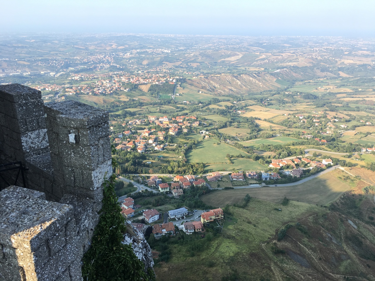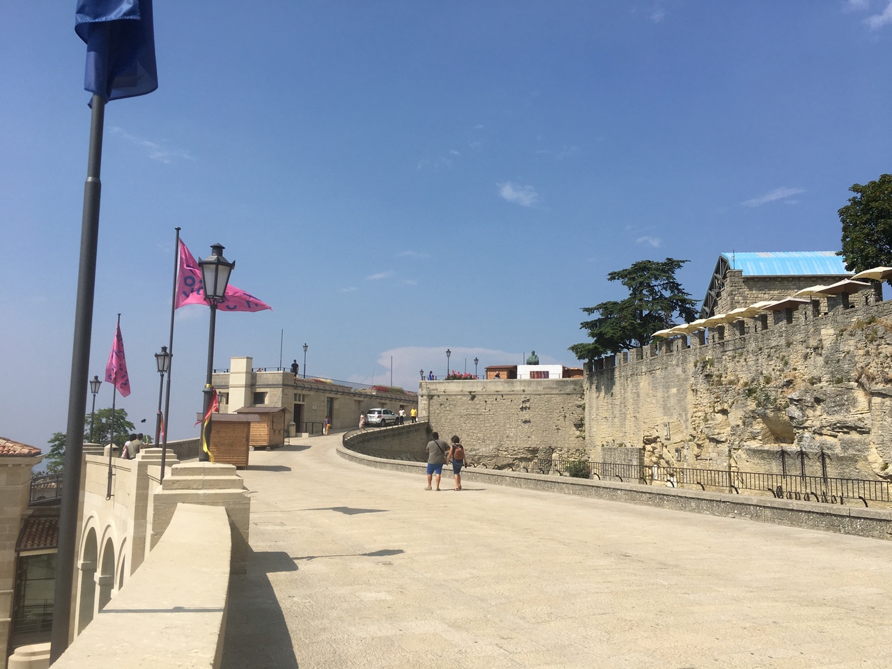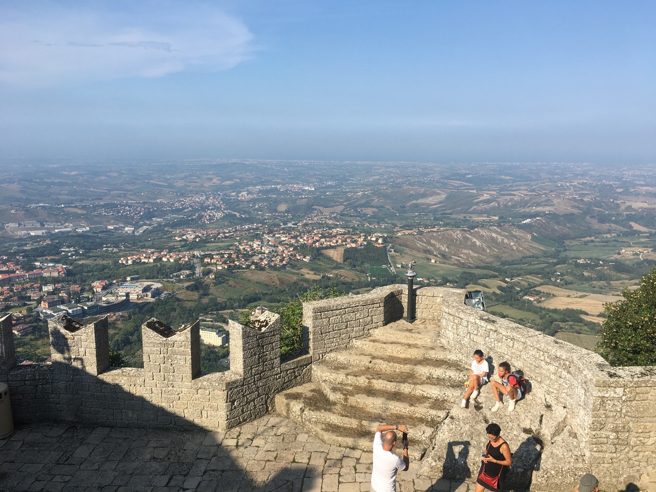 イタリアの北東部にあるサンマリノ共和国。イタリアの一部?と見られながらも、れっきとした世界最古の共和国という謳い文句を誇る独立国家です。山の上にあるため、アクセスは公共交通機関ではリミニからの路線バスのみで、あとは自家用車かタクシーといったところです。