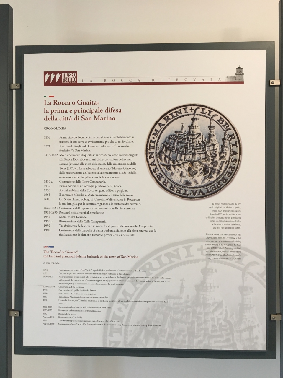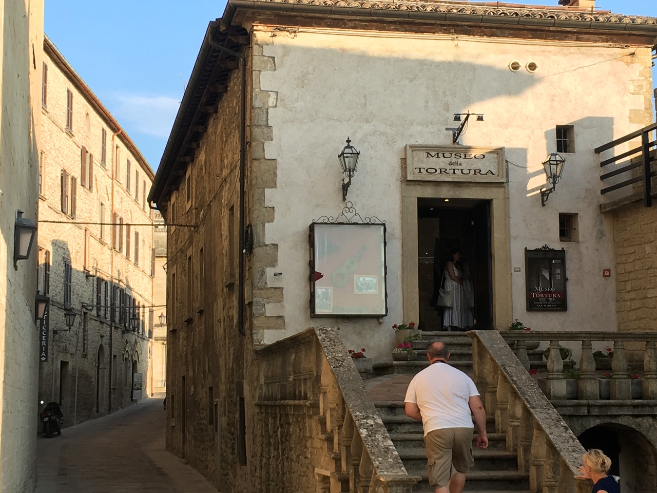 山に作られた3つの塔=スリーシスターズを持つ要塞と付随する城下町=歴史地区がサンマリノの見どころで、歴史地区内には実は博物館がちょこちょこあります。面白いものではサンマリノの移民博物館、変わり種では拷問博物館というのも…(汗)。