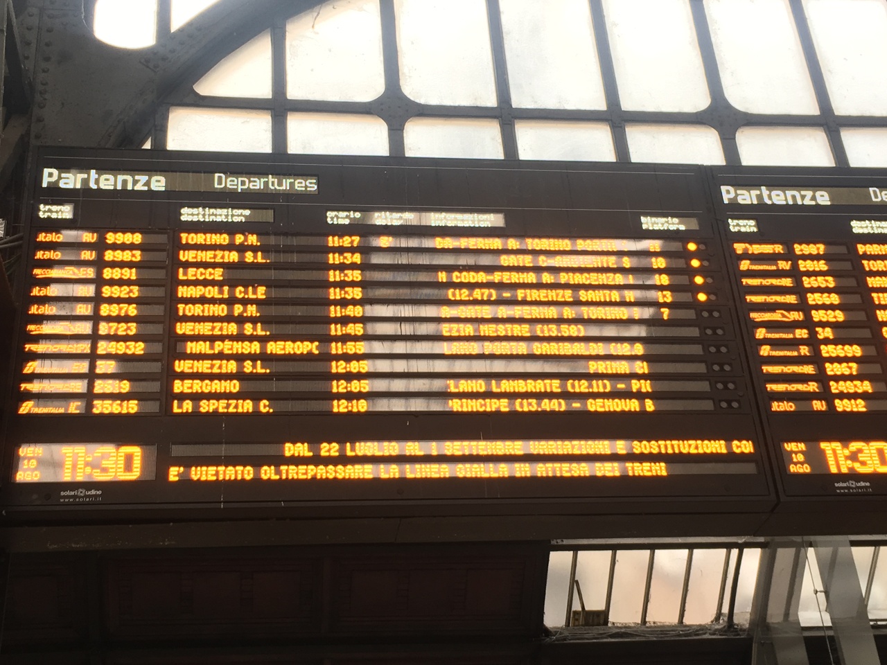 イタリア1広いミラノ中央駅には、イタリア全土の全ての特急が止まります。イタリア国鉄treinitaliaには4種類の特急があります。