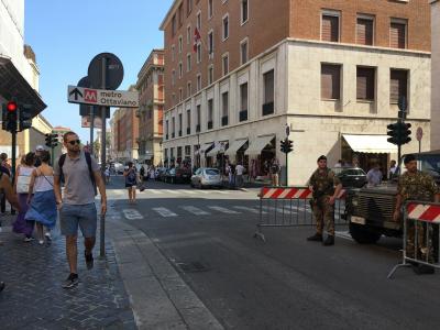 地下鉄駅から出ると一瞬方向を見失うのですが、たくさんの人がヴァチカンに向かって歩いているのでその流れに乗りましょう。そのままオッタヴィアーノ通りを南に一直線でバチカン市国に着きます。- 旅行時期