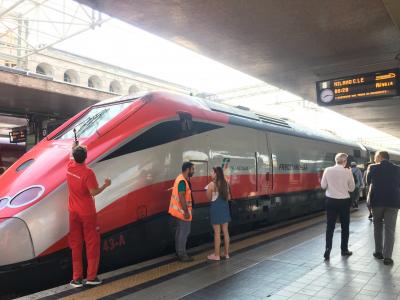 一番早いのがフレッチャロッサ。新幹線のように完全に高速線を走るため、時間もほぼ正確です。ルジェントは高速線と在来線を、ビアンカは在来線を走るため、こちらは在来線の遅れなどの影響を受けやすいです。とはいえ、イタリア国鉄はイメージよりも遅延は少ないとおもいます。遅延が無いわけではありませんが…