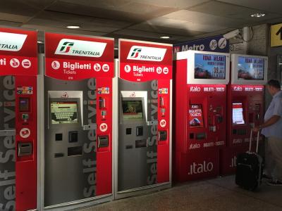 チケットは当日その場でも席があれば買えますが、オススメはトレニイタリアのHPから直接予約することです。予め便を決める必要がありますが、早期割引があり売り切れの心配もなくて、スムースに乗車することができます。切符もスマホPDFで印刷の必要もなく、日本からも取れてとても楽です。自動券売機で買うのと変わらない画面で分かりやすいです。