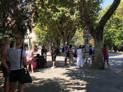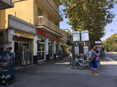 リミニのバス停は、駅を出て反対側の道路へ渡った右手側、バーガーキングの前にバス停があります。夏季は人がたくさんいるのでわかるかと思います。満席になると立ち乗りになります。大きい荷物は荷物入れに預けましょう。