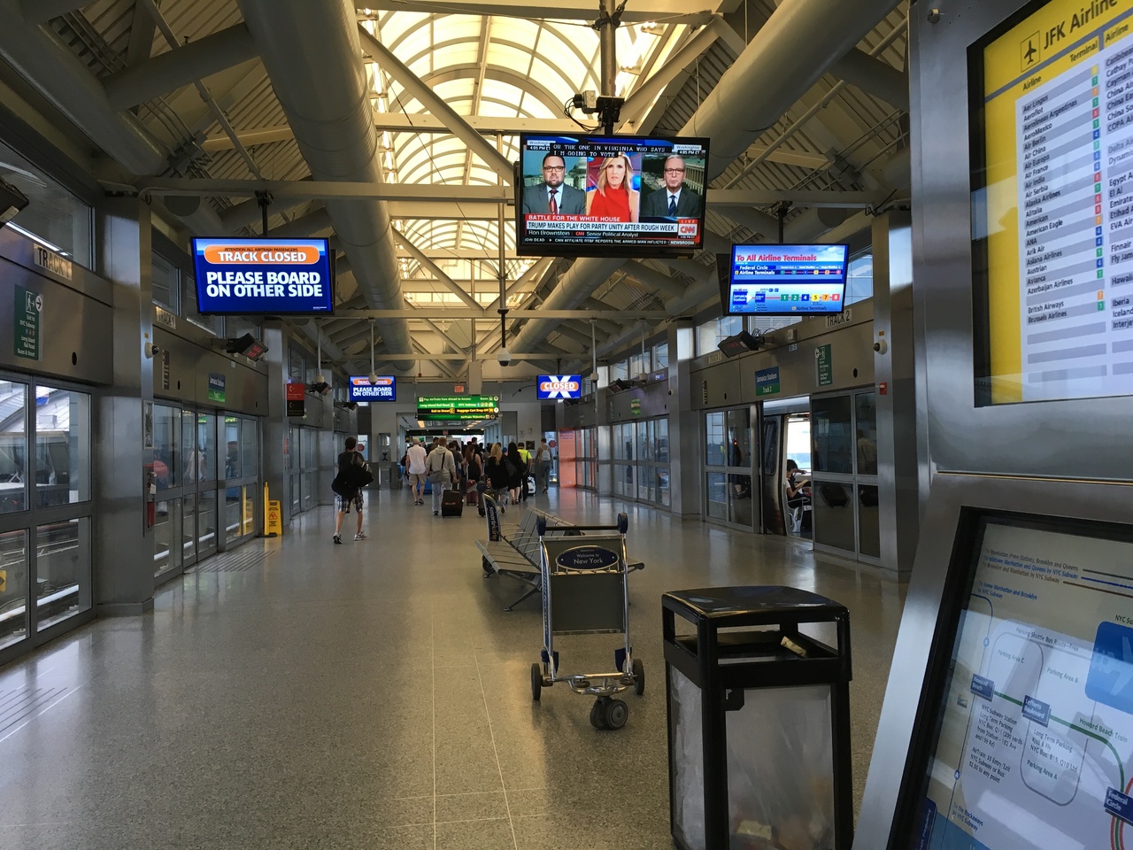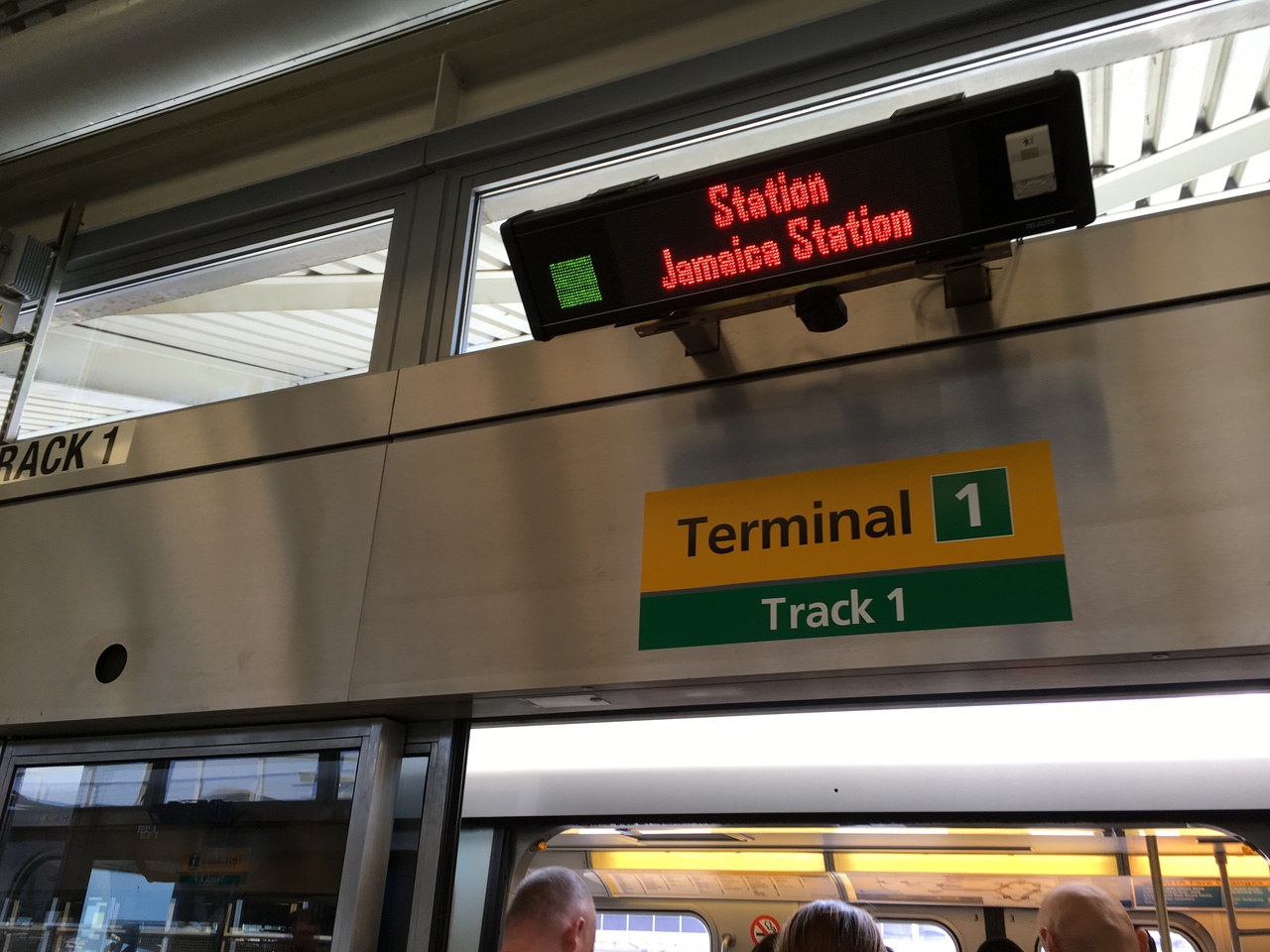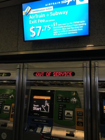 空港から乗った場合は料金後払いで、ジャマイカ駅に着いたら乗車料金5ドル+メトロカード代1ドル(これはメトロ乗車時に利用可)を券売機で購入し、改札に通します。ジャマイカ駅には大きな看板が出てるのでわかりやすいです。