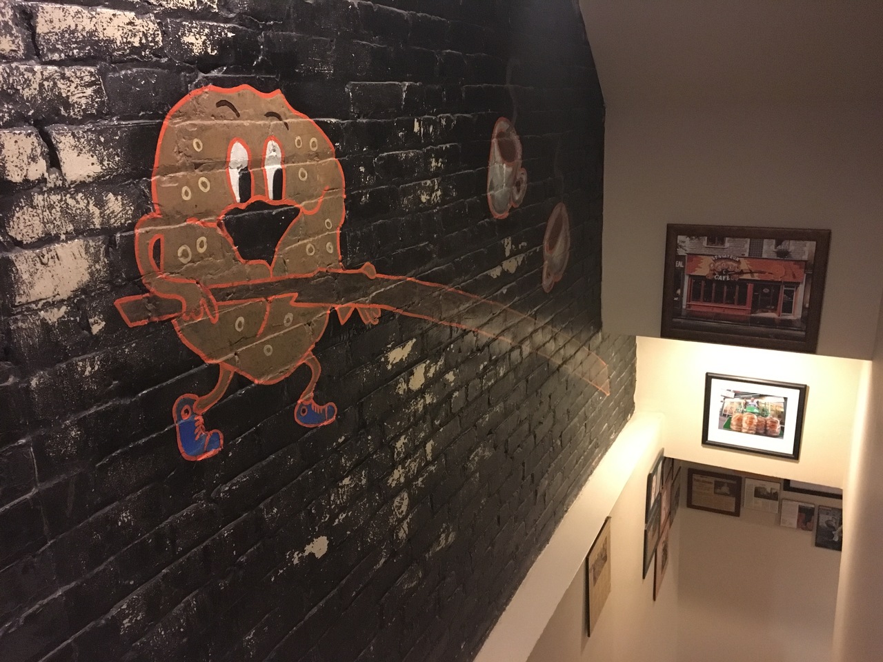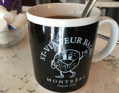 店のゆるキャラの描かれたマグカップに入った濃いめのコーヒーとともに頂いたら、さあモントリオールの一日の始まりです★