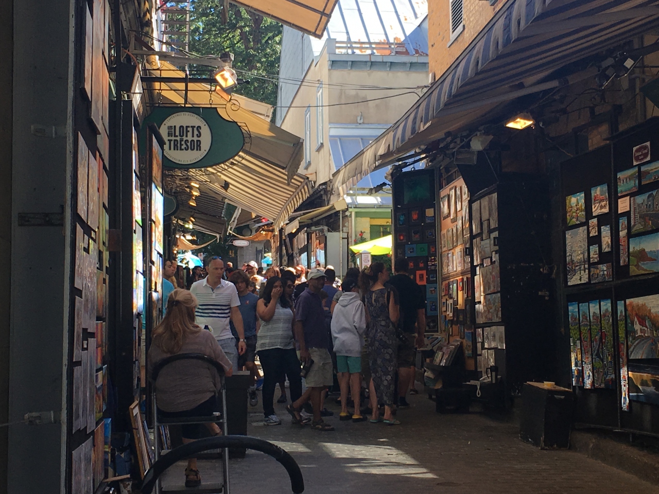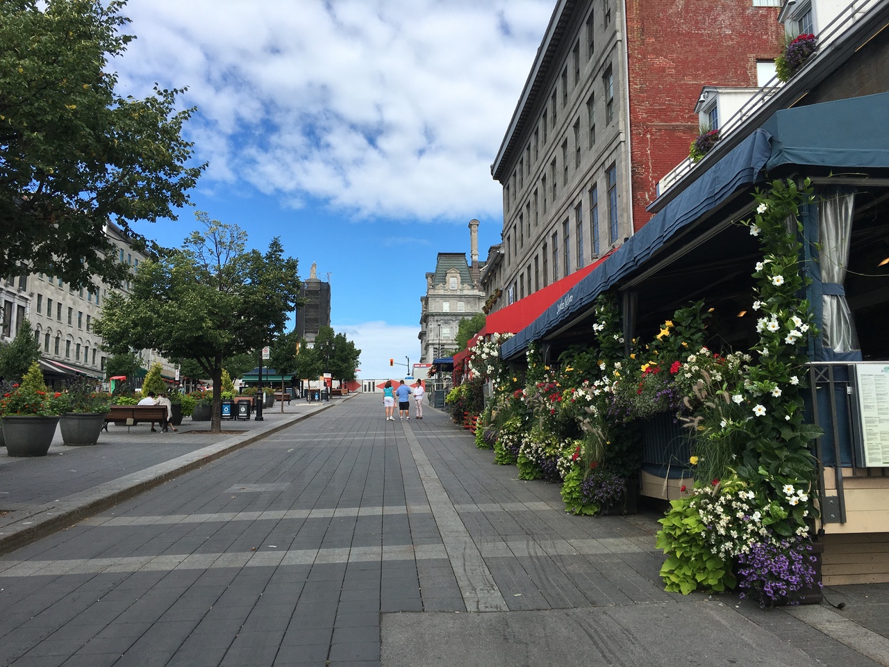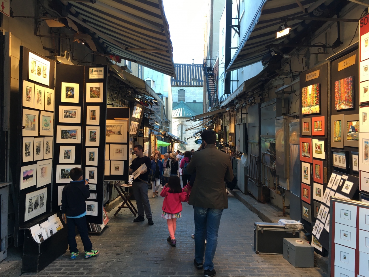 旧市街の中心部のジャック・カルティエ広場。元々は公設市場として設置された名残で、とても広い敷地を囲むようにお店があったり、露店が出ていたりしています。