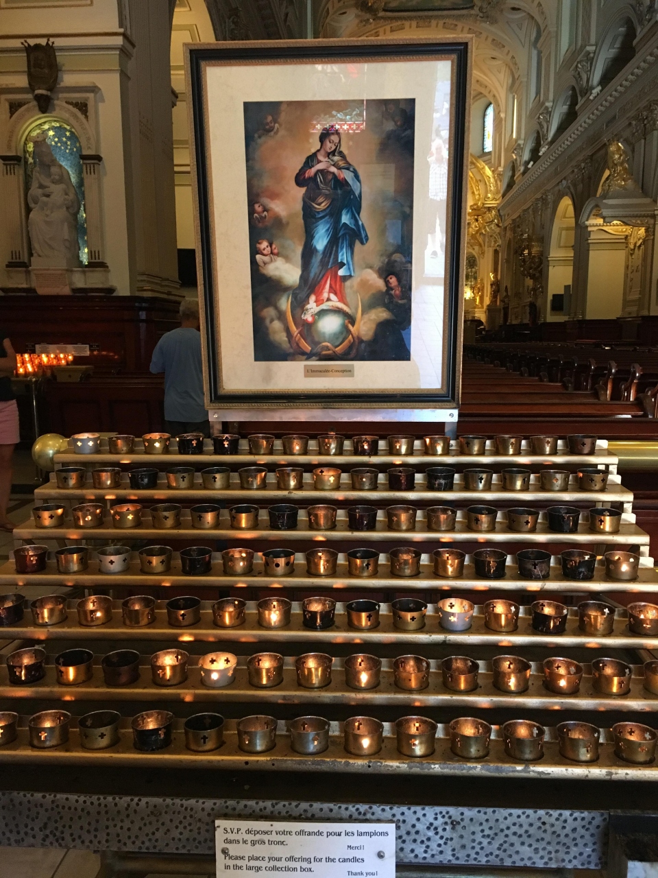 モントリオールに続き、ケベックシティにもノートルダム大聖堂があります。ノートルダム系の例にもれずここでもステンドグラスが飾られています。