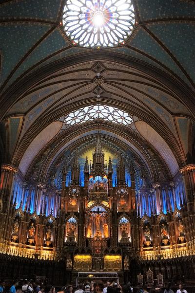 モントリオール旧市街地のほぼ中心部にあるノートルダム大聖堂。パリの同名大聖堂と同じく、内部はとても美しいステンドグラスが特徴的です。一見の価値ありです。(というか主要な観光スポットはここ位なものだったりする)