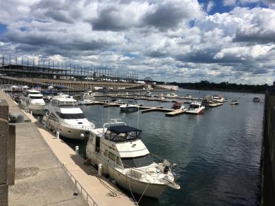 モントリオール旧市街の南西、セントローレンス川に川に面した一帯は、クルーズ用のボート等が止まる港になっています。