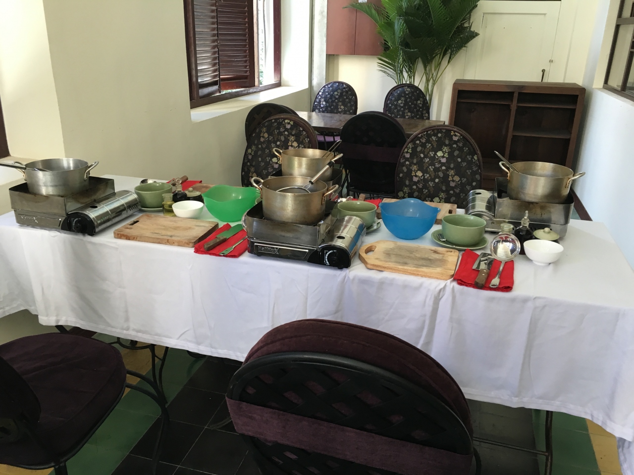 レストラン同様、お洒落で小奇麗な会場はこじんまりとしており、世界各国からの受講者を受け入れています。定員は15名くらいまでだと思うので、先生の目の届く範囲で調理できるのがありがたいです。