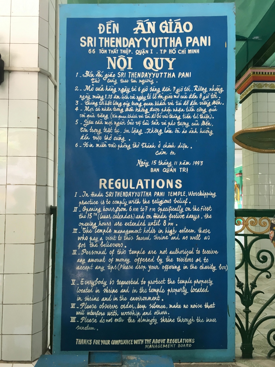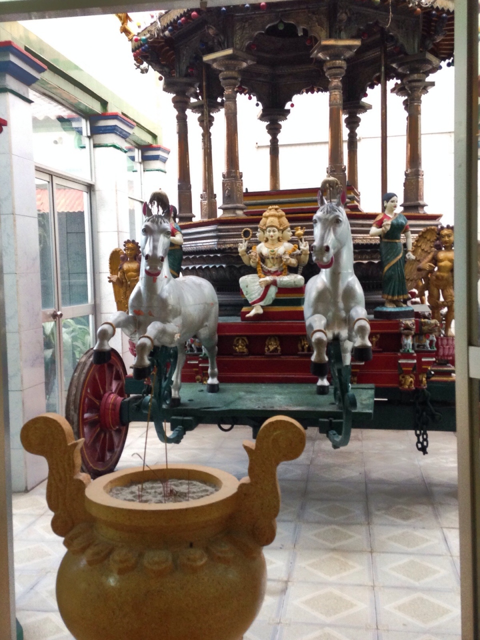 南インドのタミル系によって建立されたとされているこのマンディルは、明るい色調と程よいサイズのお寺で、インド人というよりは地元の人の参拝者がそこそこ訪れていました。