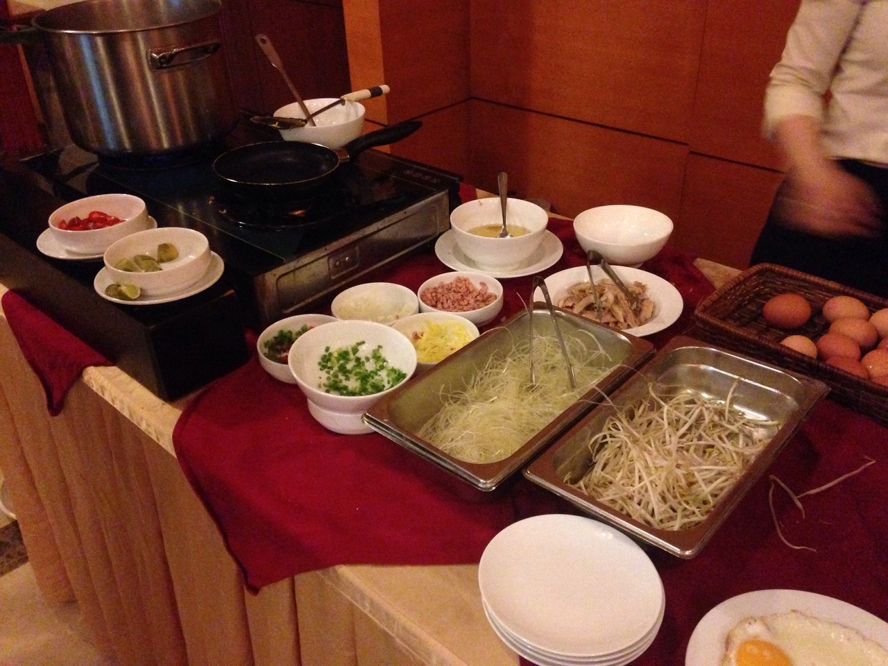 バス付き、毎日お水とお茶のサービスあり、シャンプー&バスジェルとその他アメニティあり、バスタブ付き(シャワーのみの部屋もあるようです)、クローゼットあり、フリーwifi。朝食はウエスタンバイキングですが毎日少しずつ内容が変わったりフォーと卵料理が注文制だったりで頑張ってる印象です。