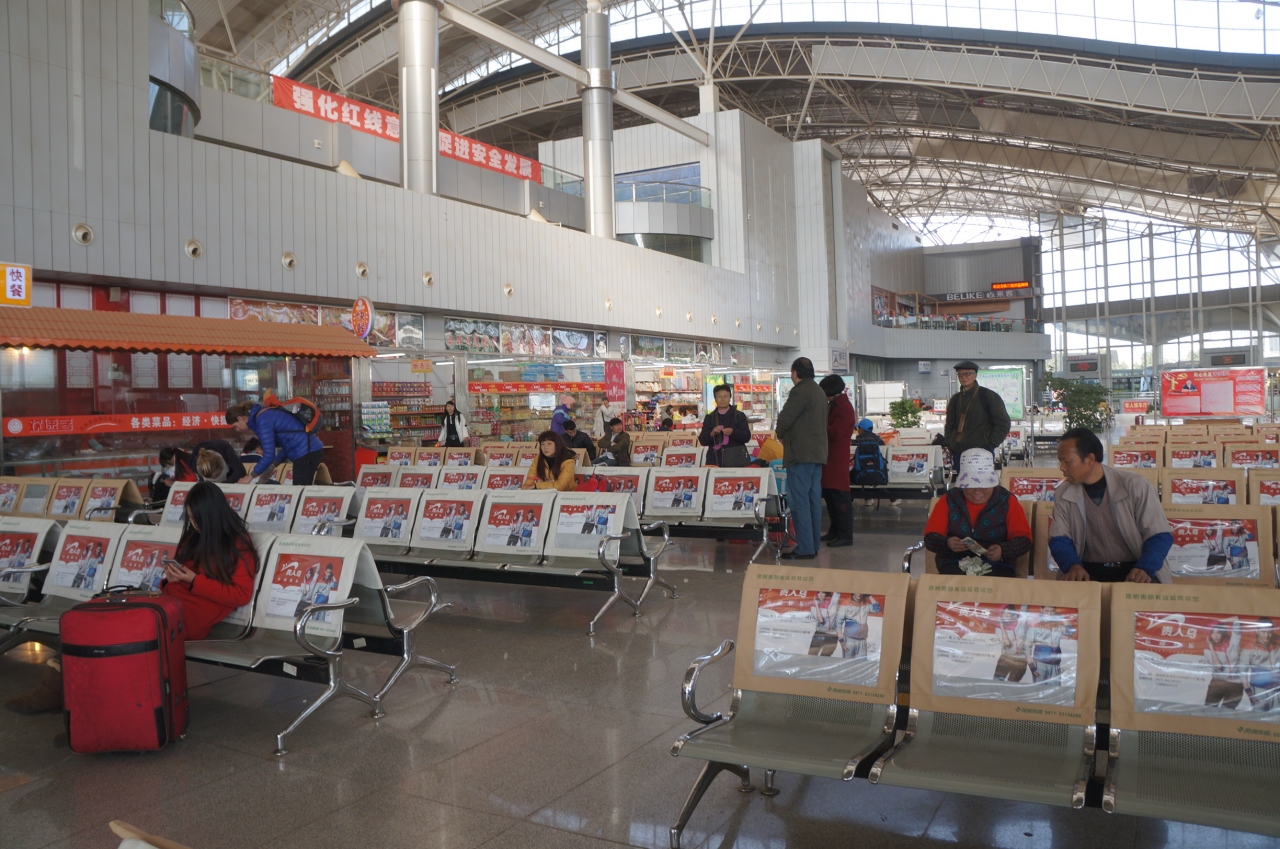 窓口は比較的多く、行先と料金と時間が上部に掲示されています(百度でも検索可)。窓口は筆談でOKで助かります。セキュリティエリアには広々とした待合室とwifiあり。