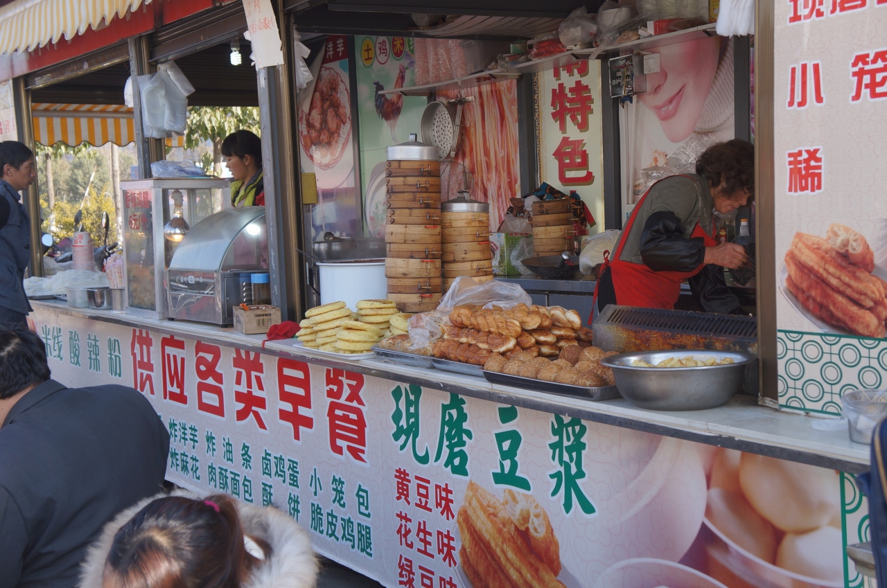 建物内外に食品売り場がありますが、朝の8~10時限定で駅前の道に屋台が出るので、そこで食べるのもオススメです。