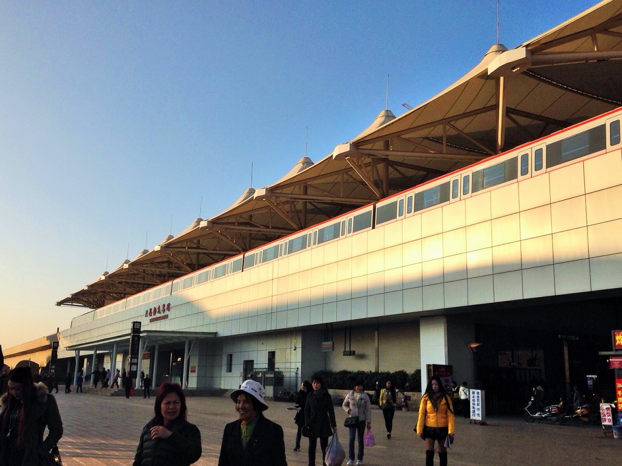 駅の目の前に車をつけてもらうと、右手の新しい建物・地下鉄駅と線路が、左手の奥の方にバスのチケット売り場があります。